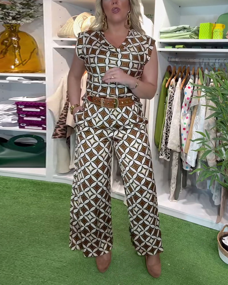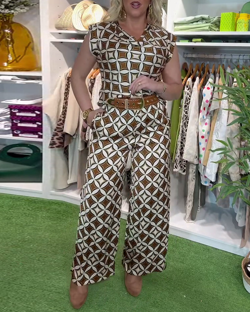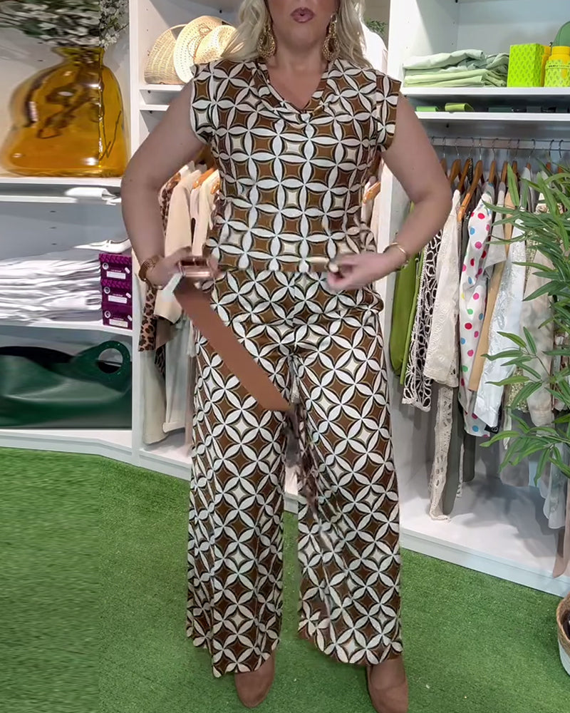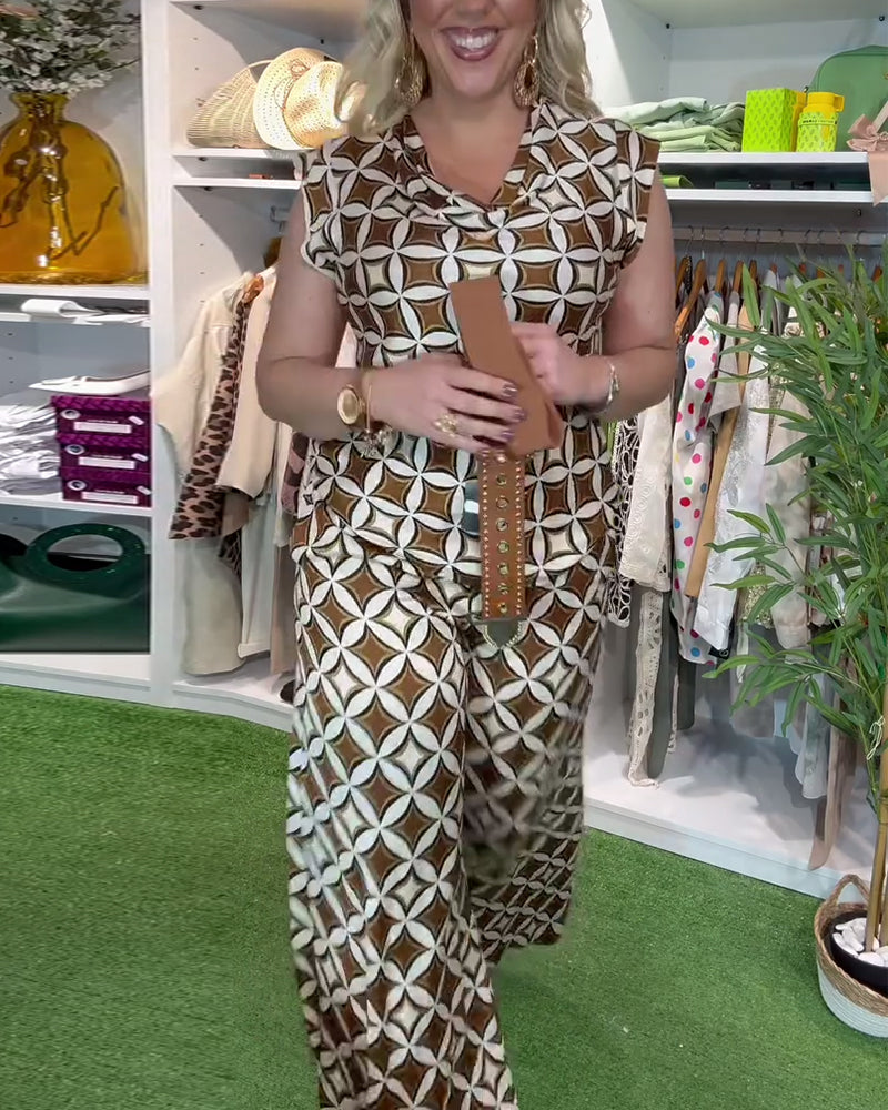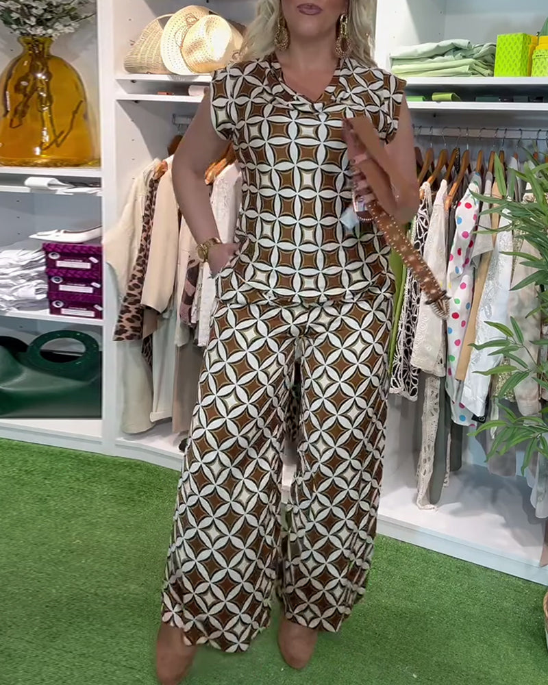 Anzug Modisch Rundhals Bedruckte Weitbein-Hose