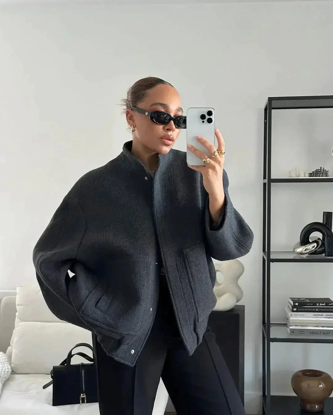 - Größentipp: Für eine perfekte Passform empfehlen wir, die Jacke eine Größe größer zu bestellen als gewohnt. Die Ariana Jacke ist eine elegante, minimalistische Wahl mit einem modernen Twist. Sie verleiht Ihrem Look mühelos Stil.