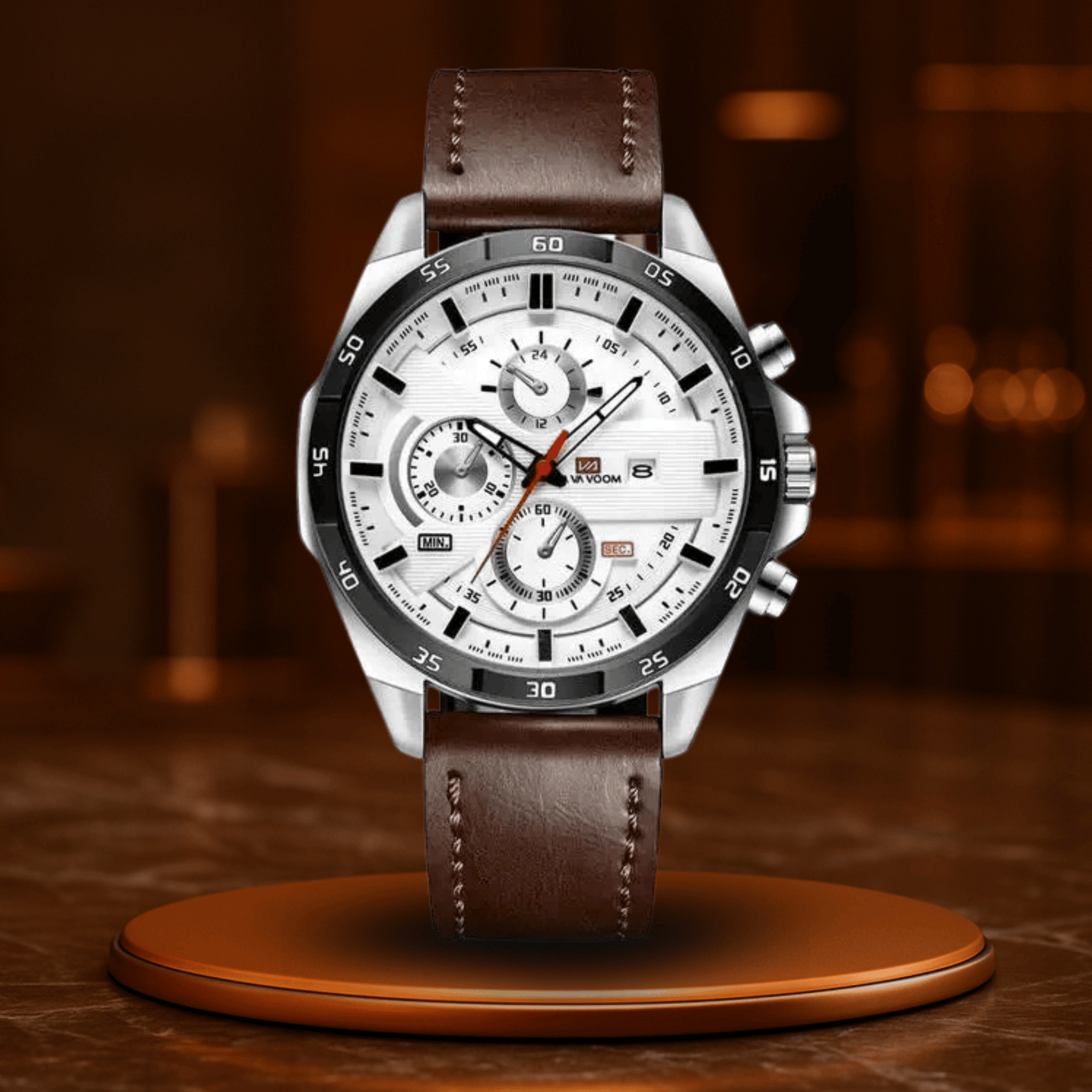 Das feine Lederarmband sorgt für Komfort und eine klassische Ausstrahlung, während die klaren Zifferblätter und die kalenderbasierte Organisation dafür sorgen, dass du auch im Dunkeln den Überblick behältst. Stilvoll. Stark. Vielseitig.