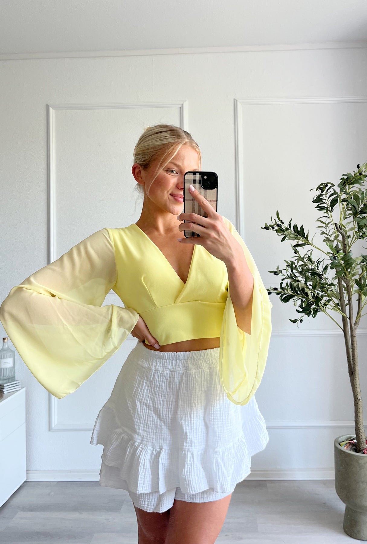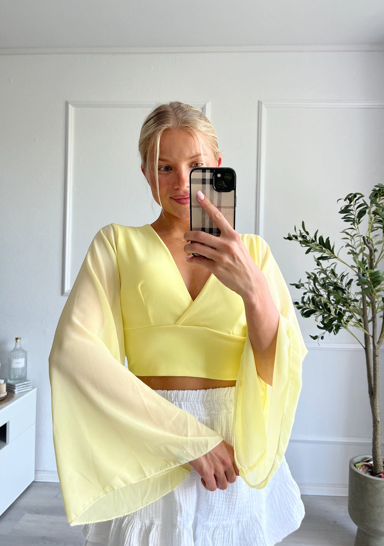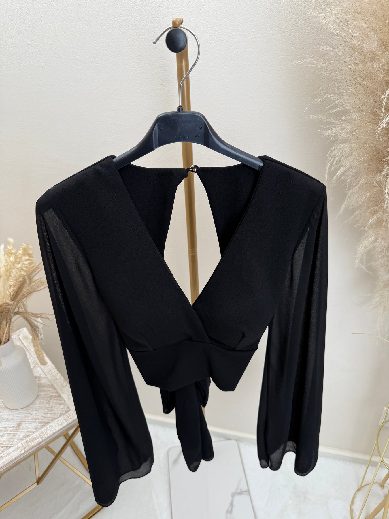 Stilvolle Binde-Bluse mit leicht transparentem Stoff und luftigen Ärmeln.