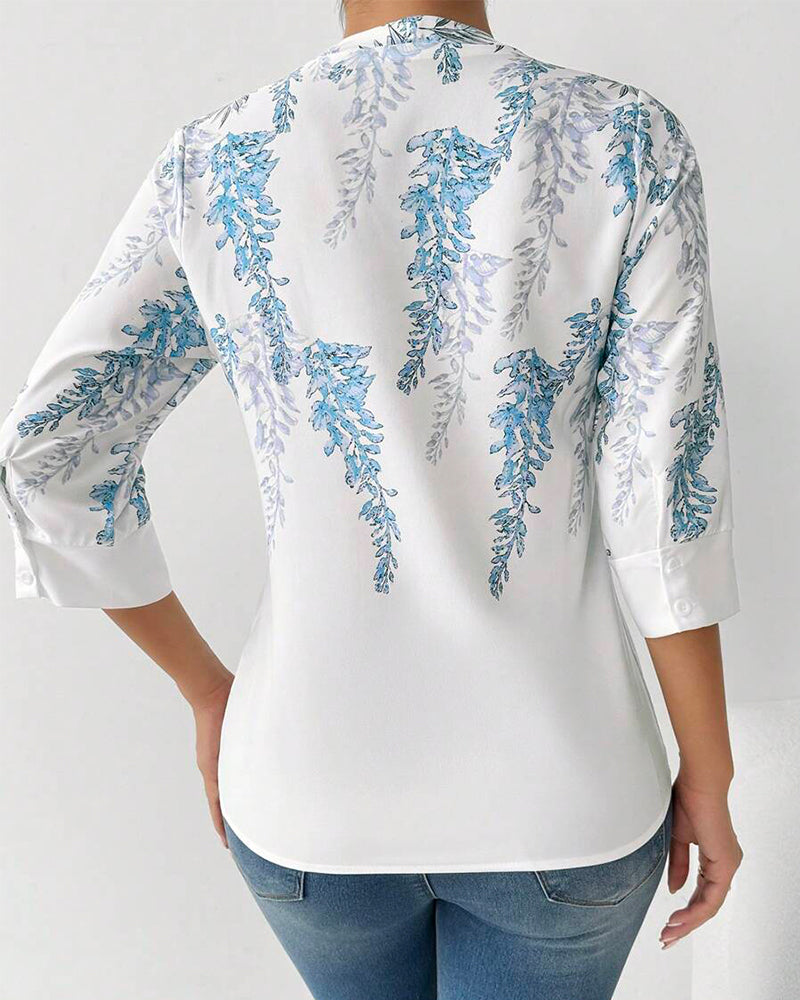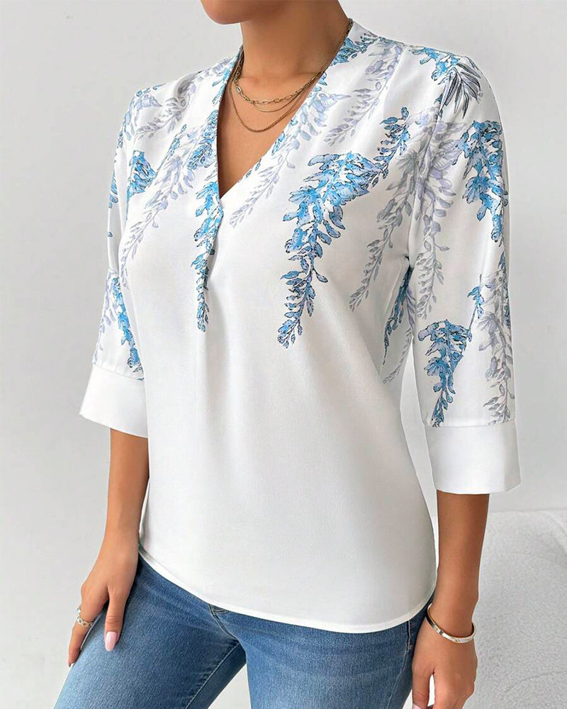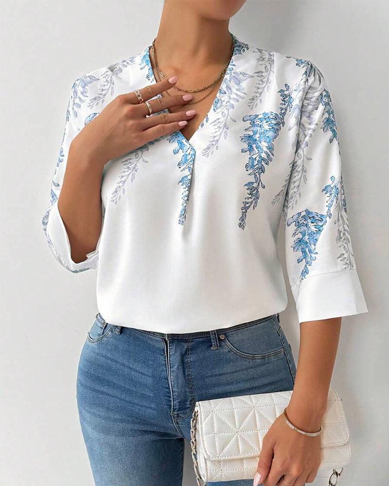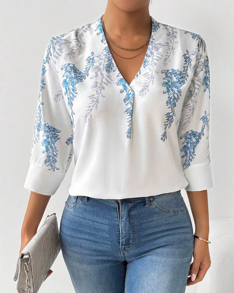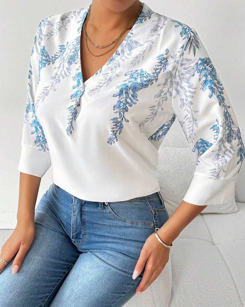 Bluse Dreiviertelärmel V-Ausschnitt Bedruckt