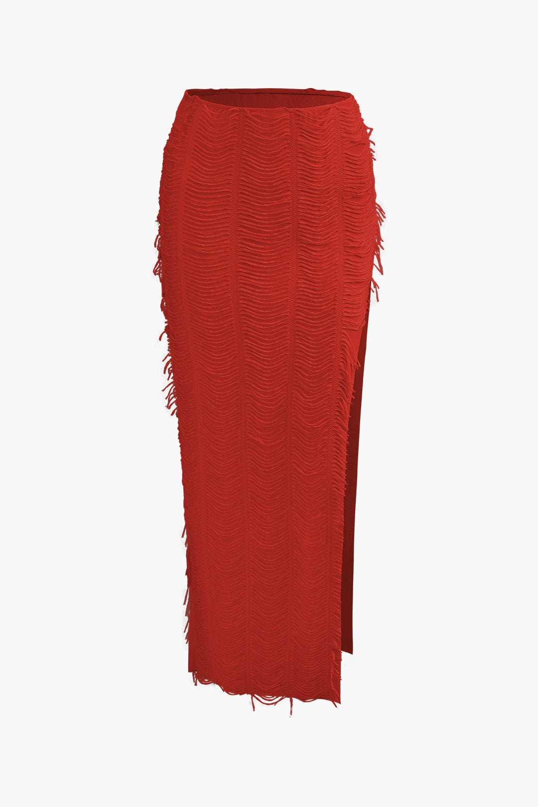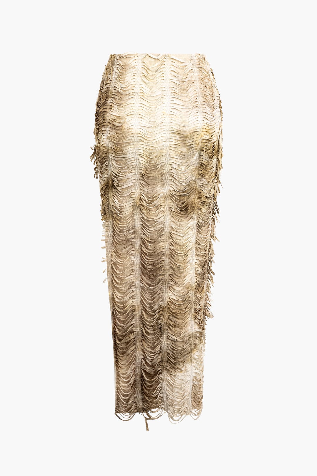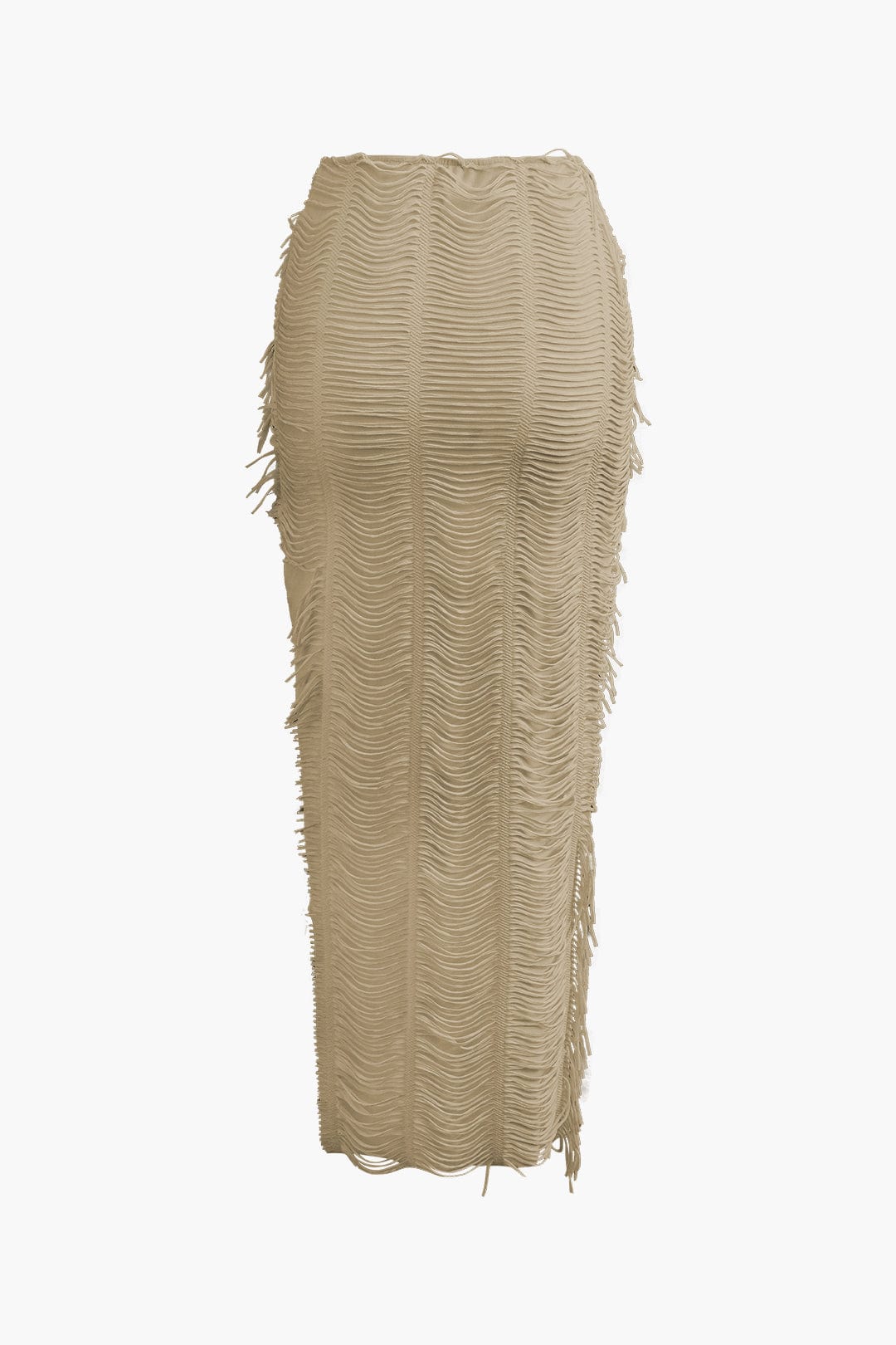 Der Charlene Fransen-Zweiteiler ist ein atemberaubendes Ensemble, das Stil und Dynamik vereint. Das ärmellose Top mit V-Ausschnitt sorgt für eine feminine Note, während der figurbetonte Rock mit seitlichem Schlitz und langen Fransen eine elegante Bewegung verleiht. Perfekt für besondere Anlässe, Partys oder sommerliche Abendveranstaltungen.