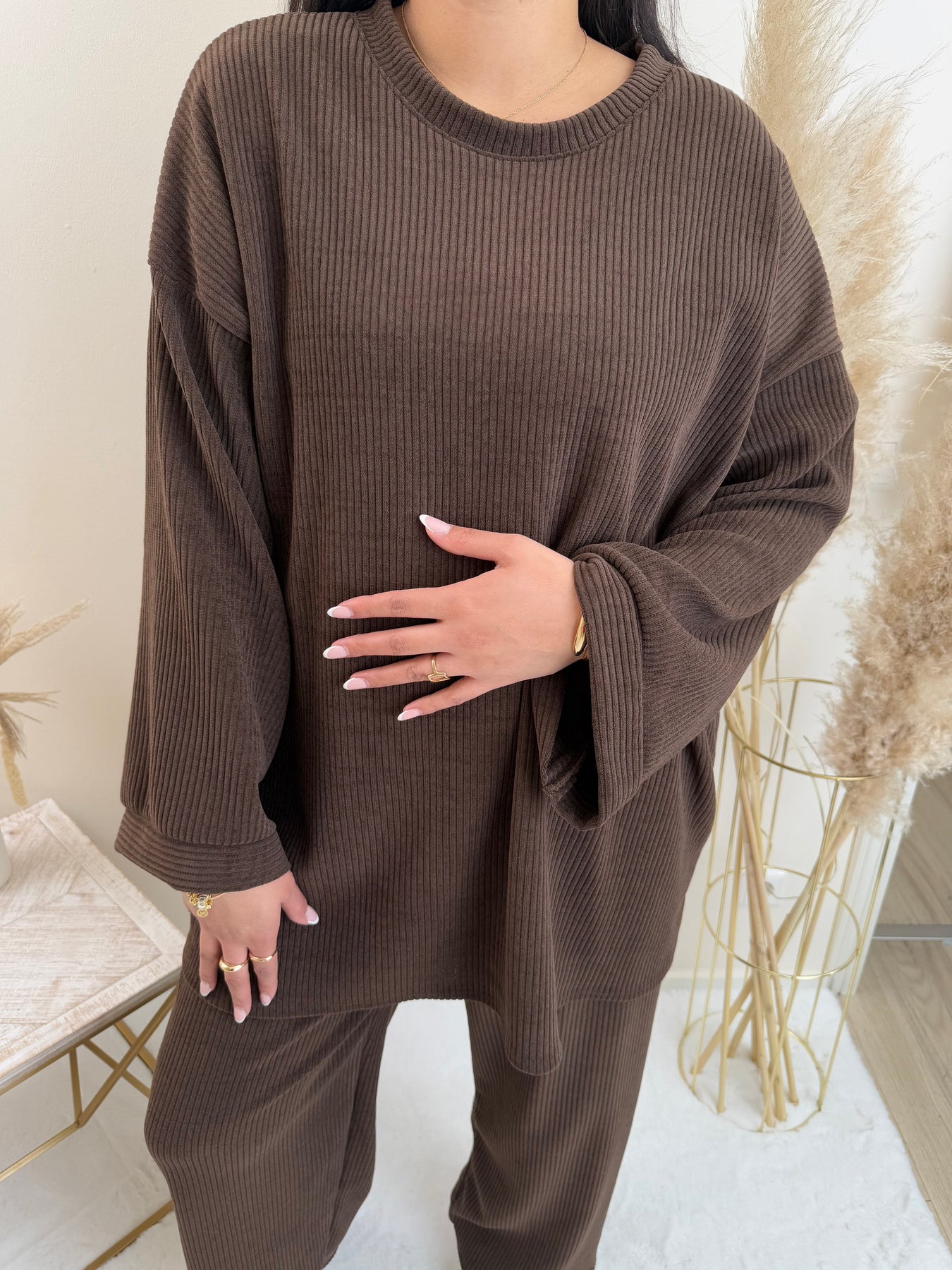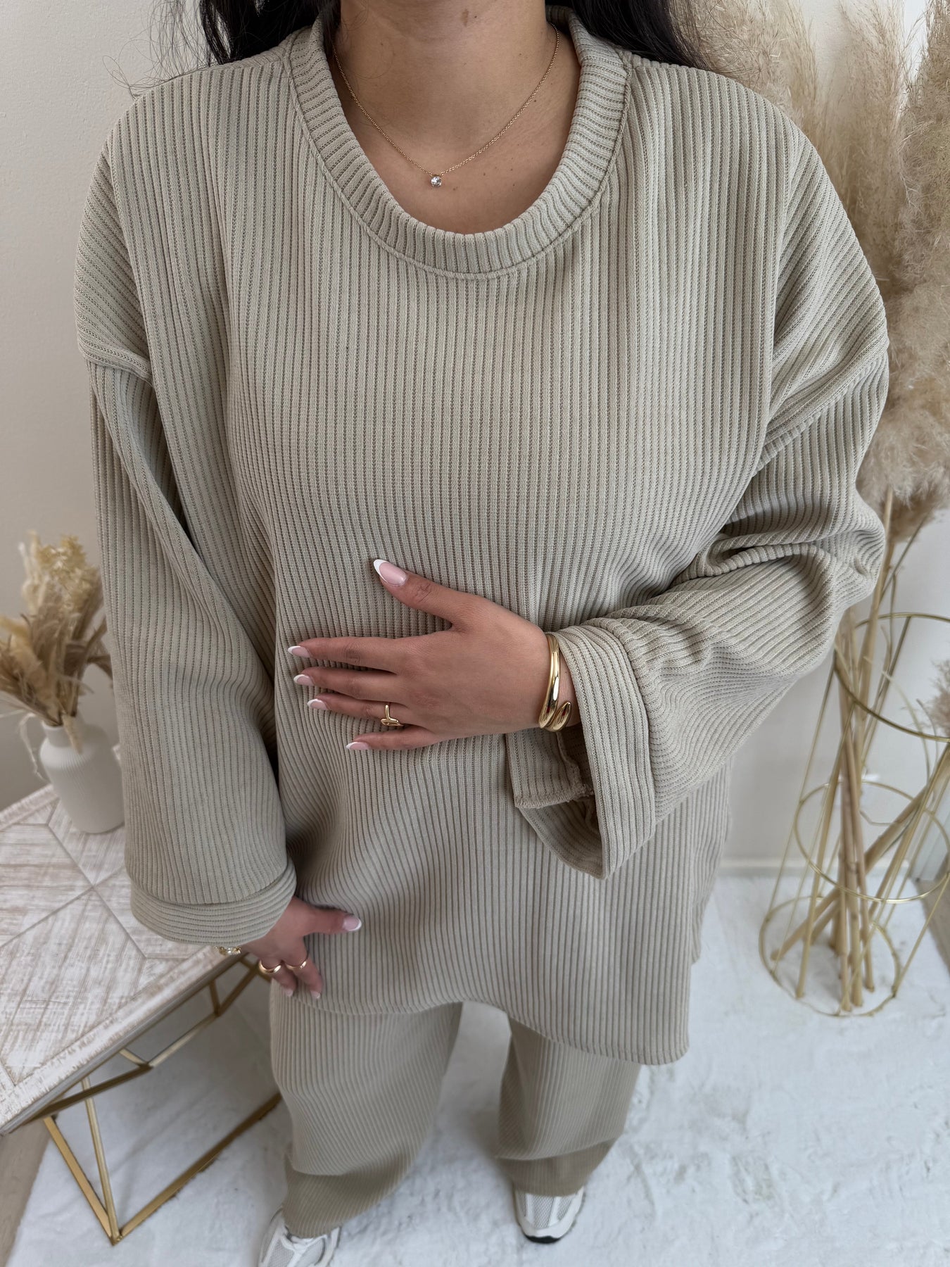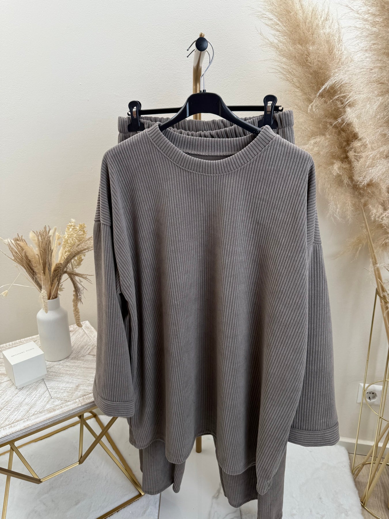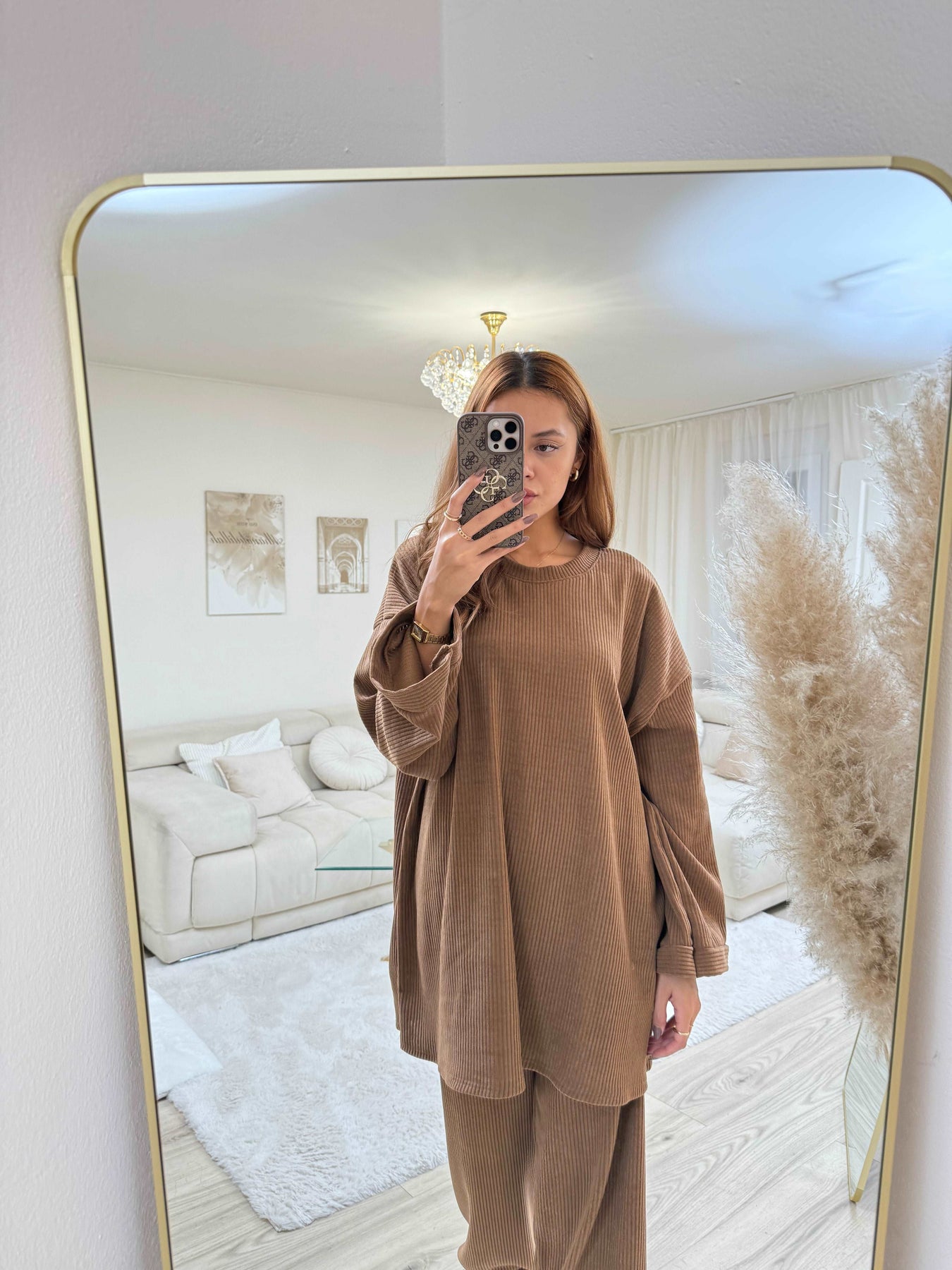 Unser Cord-Set besticht durch sein zeitloses, doch trendbewusstes Design. Das warme, strukturierte Cordmaterial verleiht dem Set einen klassischen Look, der modern interpretiert wurde und sich perfekt für entspannte Wintertage eignet.