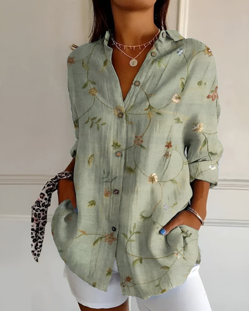 Damen Bluse mit V-Ausschnitt | Lockere Langarmbluse mit Knöpfen