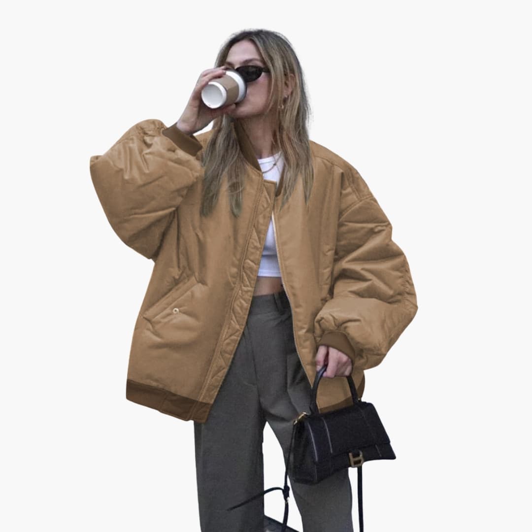 Oversize Damen Bomberjacke mit Reißverschluss und Taschen