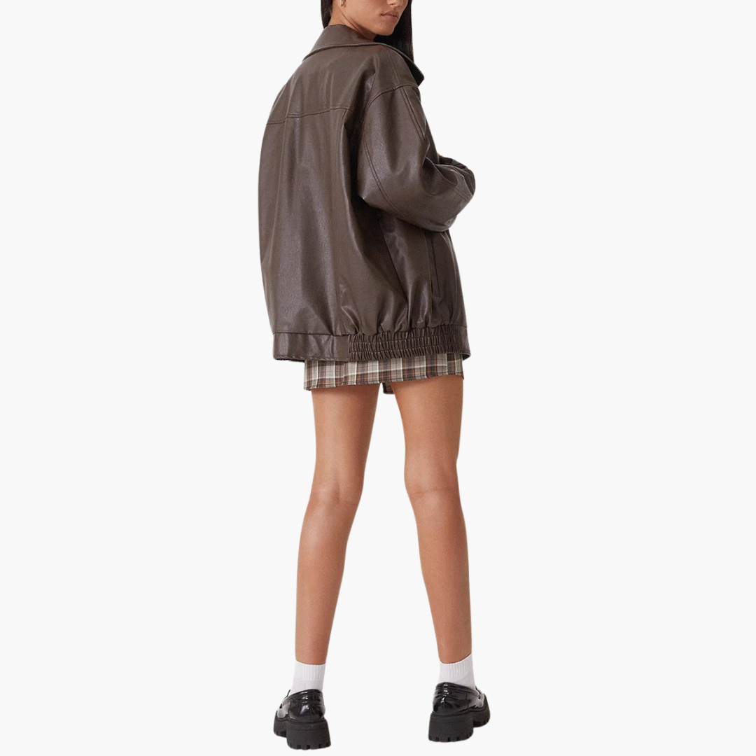 Übergroße Damen Bomberjacke mit Reißverschluss und Seitentaschen