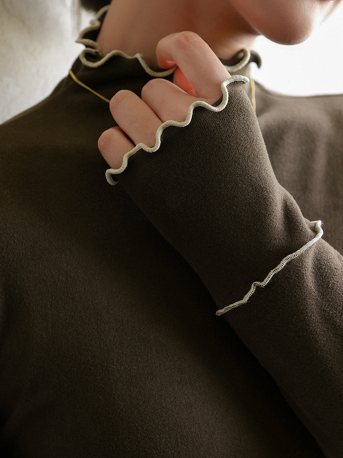 Damen Langarmshirt Polyester Hochkragen Slim Fit