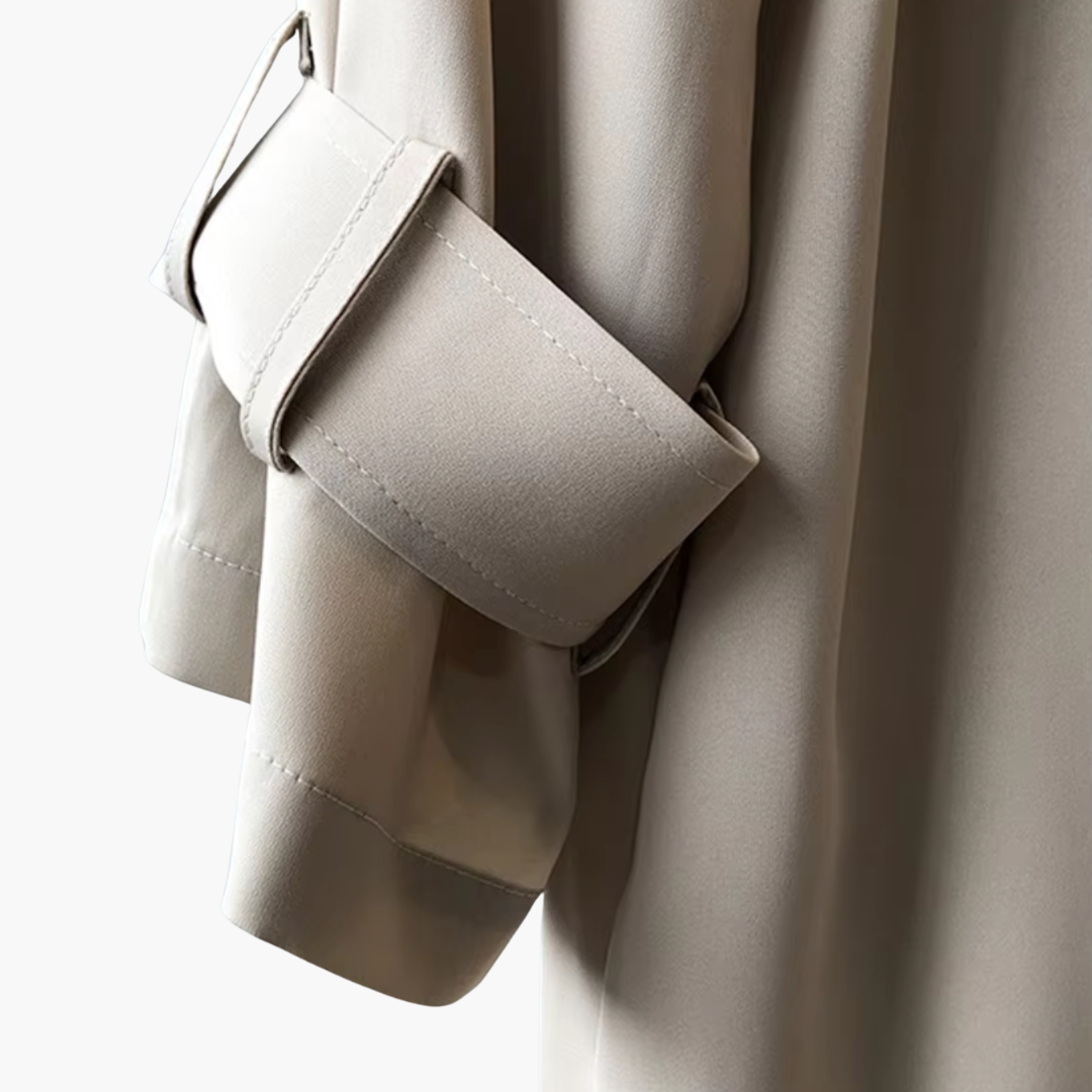 • Gerader Saum: Gleichmäßiger Saum, der den Abschluss des Mantels betont.