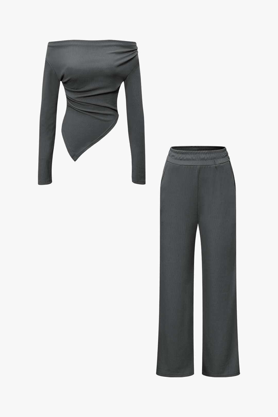 Daniela | Elegantes Zweiteiler-Set mit Asymmetrischem Oberteil & Weiten Hosen