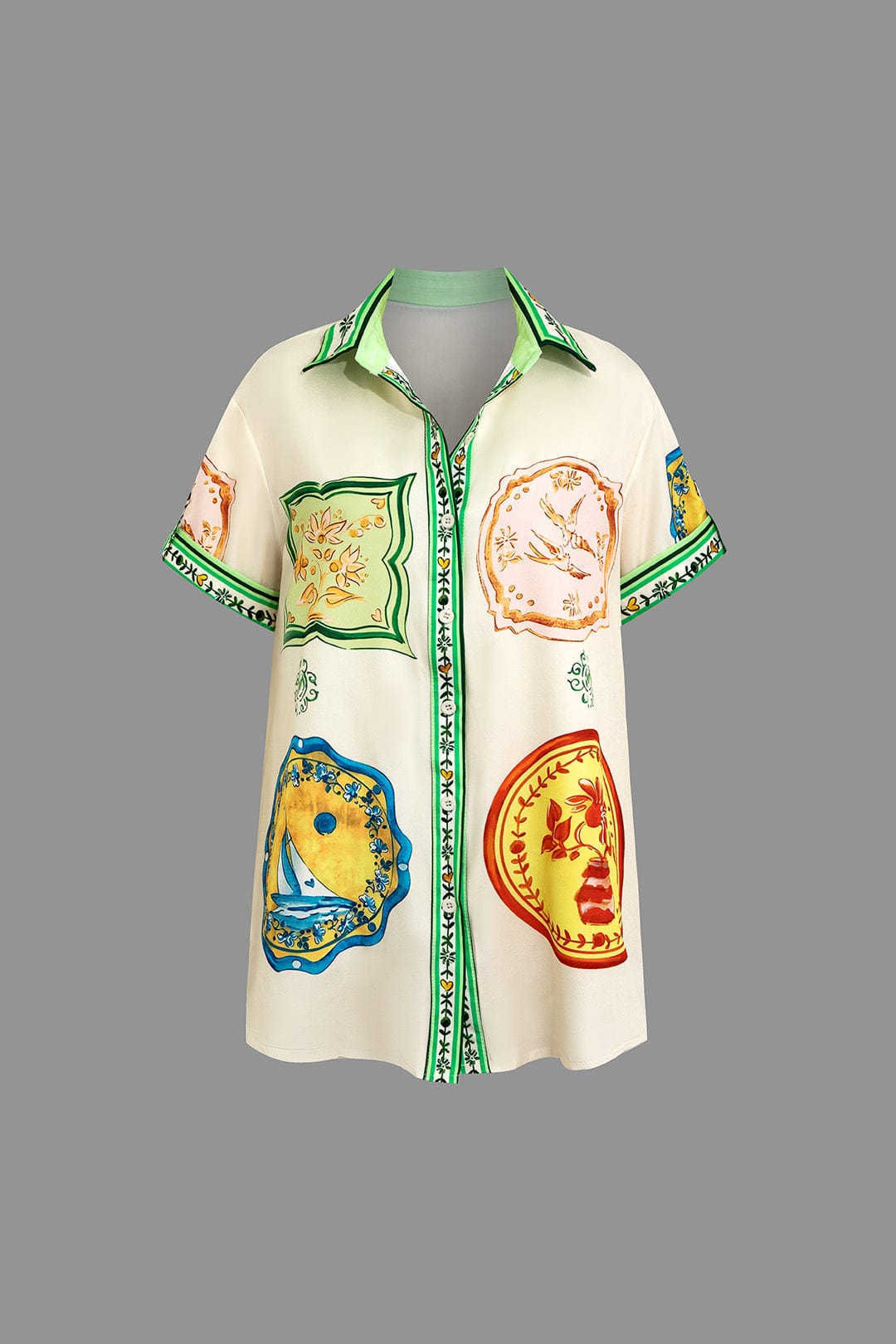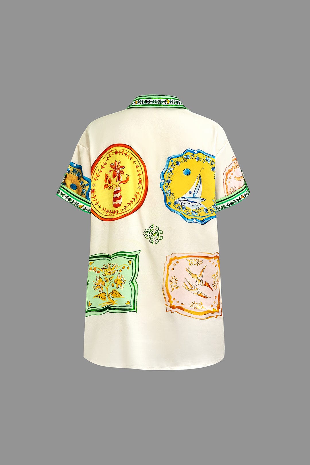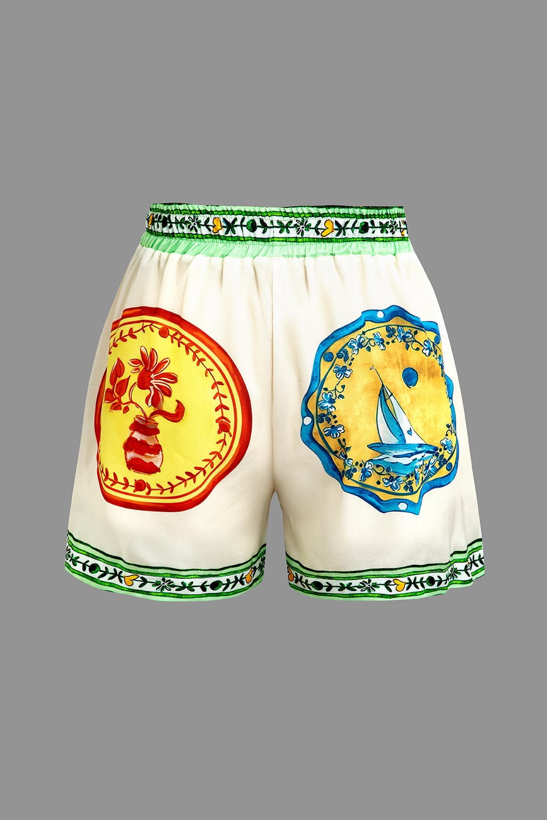 Das Denise Zweiteiler-Set besticht durch sein einzigartiges Print-Design und seine lebendigen Farben. Die kurzärmelige Bluse mit klassischem Kragen und die passenden Shorts sorgen für einen frischen, sommerlichen Look. Das Set ist aus leichtem, atmungsaktivem Stoff gefertigt und bietet optimalen Tragekomfort. Ideal für lässige Tagesoutfits, Sommerpartys oder stilvolle Urlaubslooks.