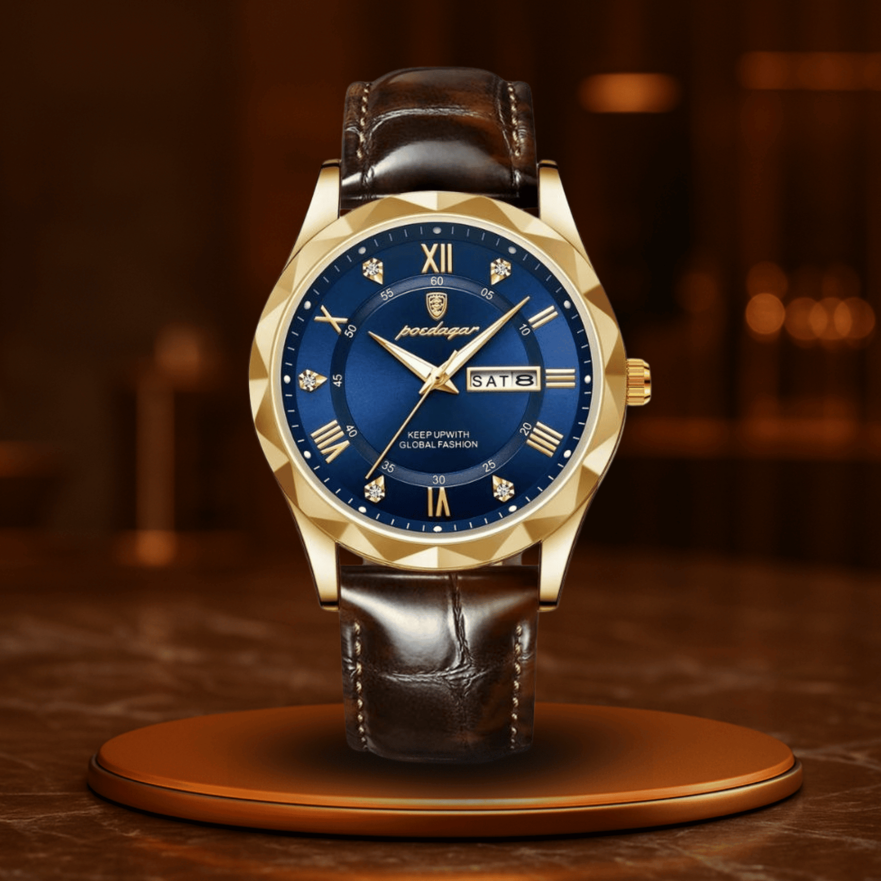 Der Der Elegante – Édition Lumière von Maison Valmont ist mehr als nur eine Uhr – es ist das stille Versprechen von Stil, Substanz und Zuverlässigkeit. Mit einem raffinierten minimalistischen Zifferblatt, einem qualitativ hochwertigen Lederarmband und einem Quarzwerk, das niemals zögert, ist diese Uhr der ideale Begleiter vom ersten Treffen bis zum letzten Glas am Abend.