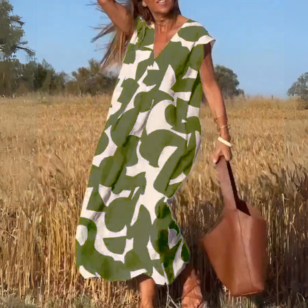 ELENA | BEDRUCKTES KLEID MIT V-AUSSCHNITT