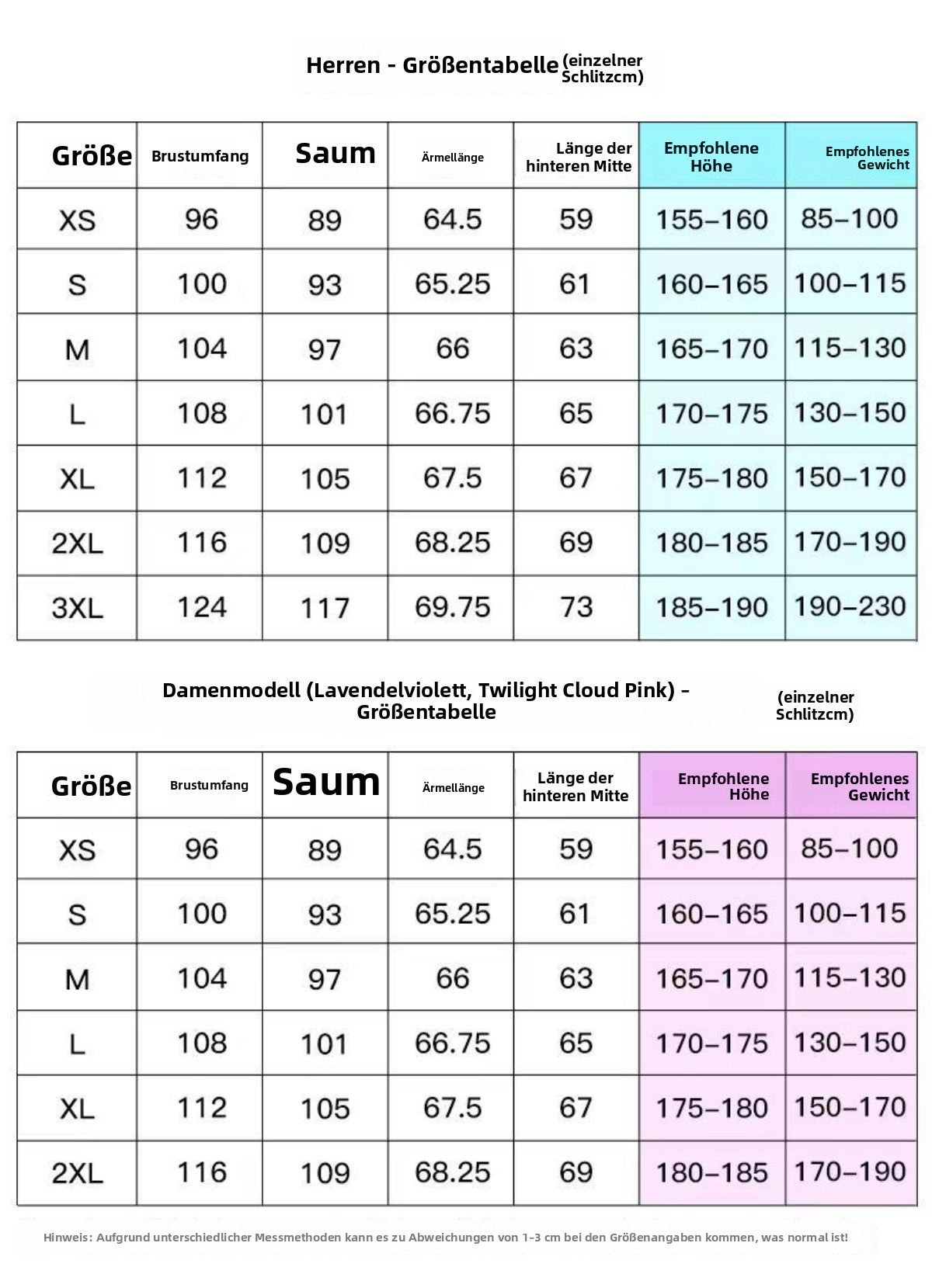 Für den bestmöglichen Tragekomfort empfehlen wir Ihnen, einen Blick auf unsere Größentabellen. Bitte zur benötigten Größentabelle scrollen
