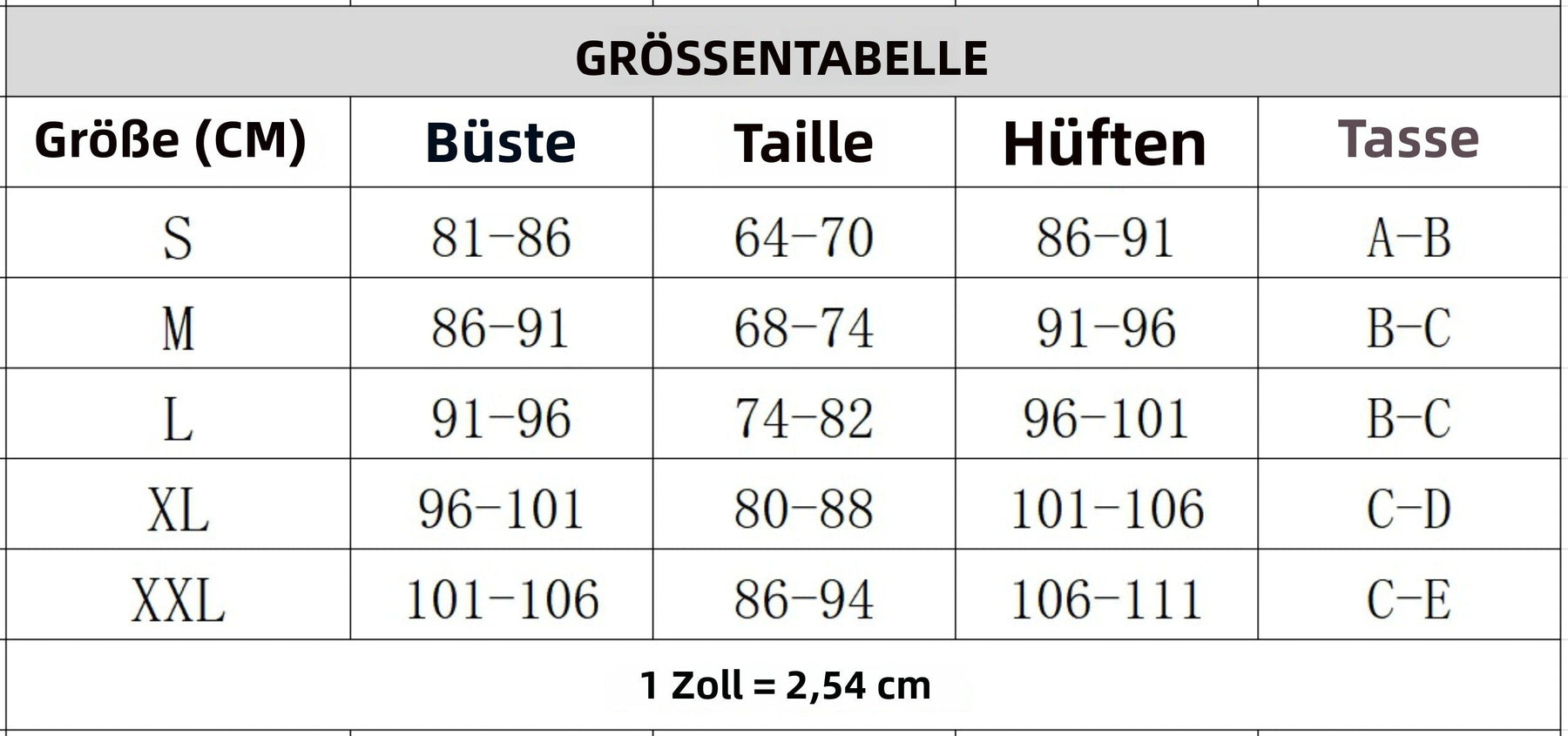 | Größe | Brust (cm) | Taille (cm) | Hüfte (cm) |