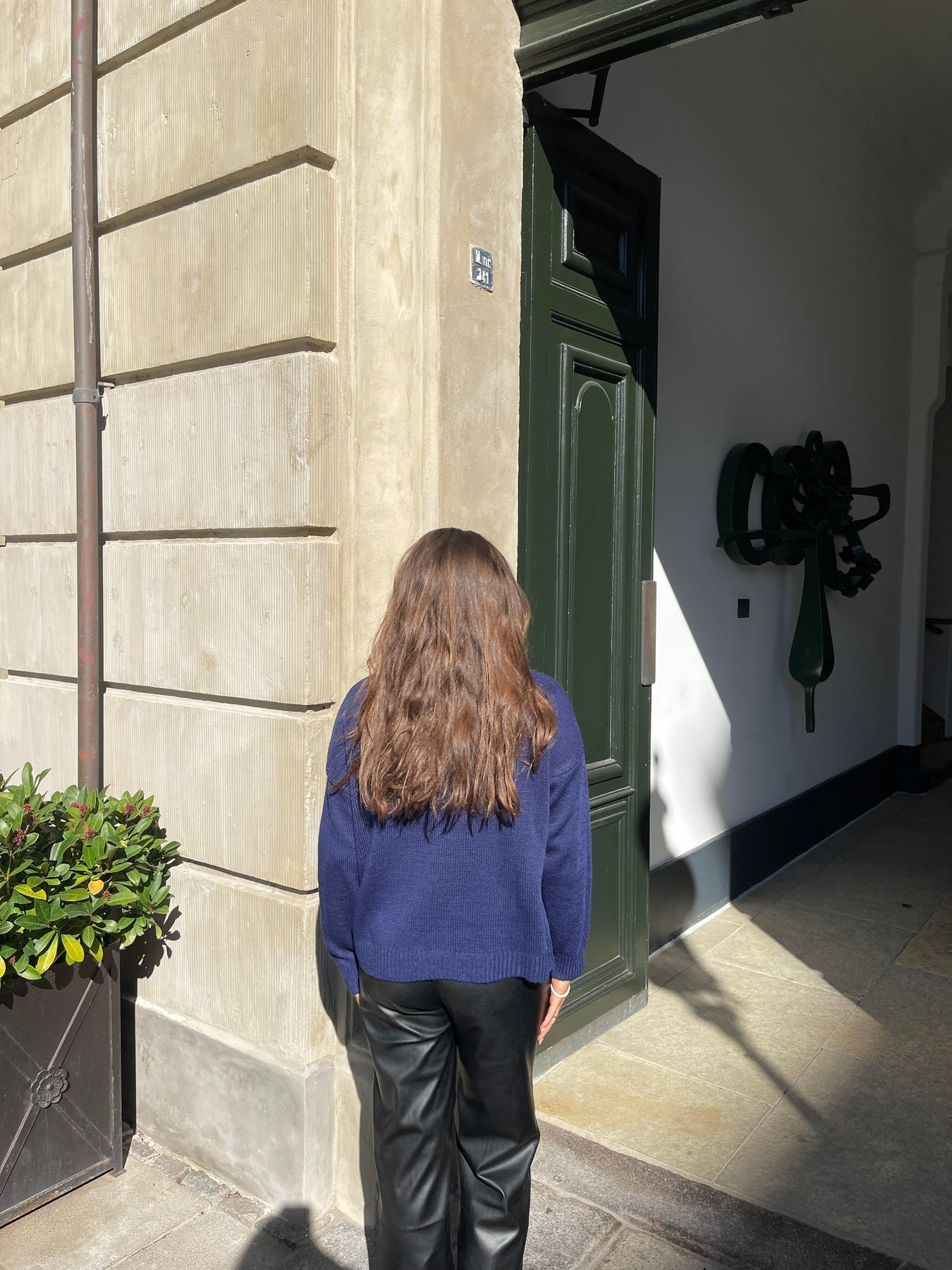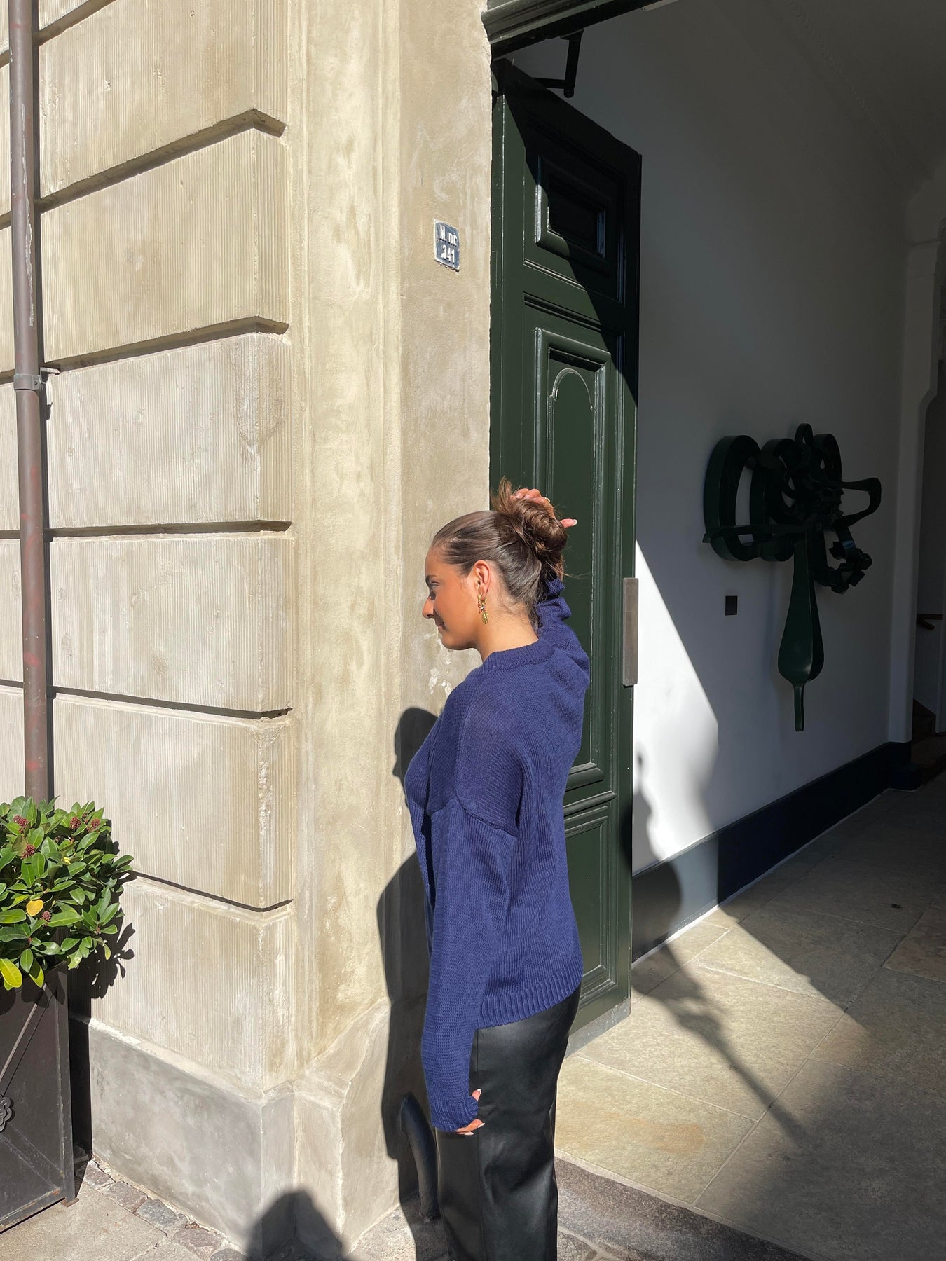 Erleben Sie die ideale Kombination aus Stil und Bequemlichkeit mit diesem marineblauen Strickpullover.