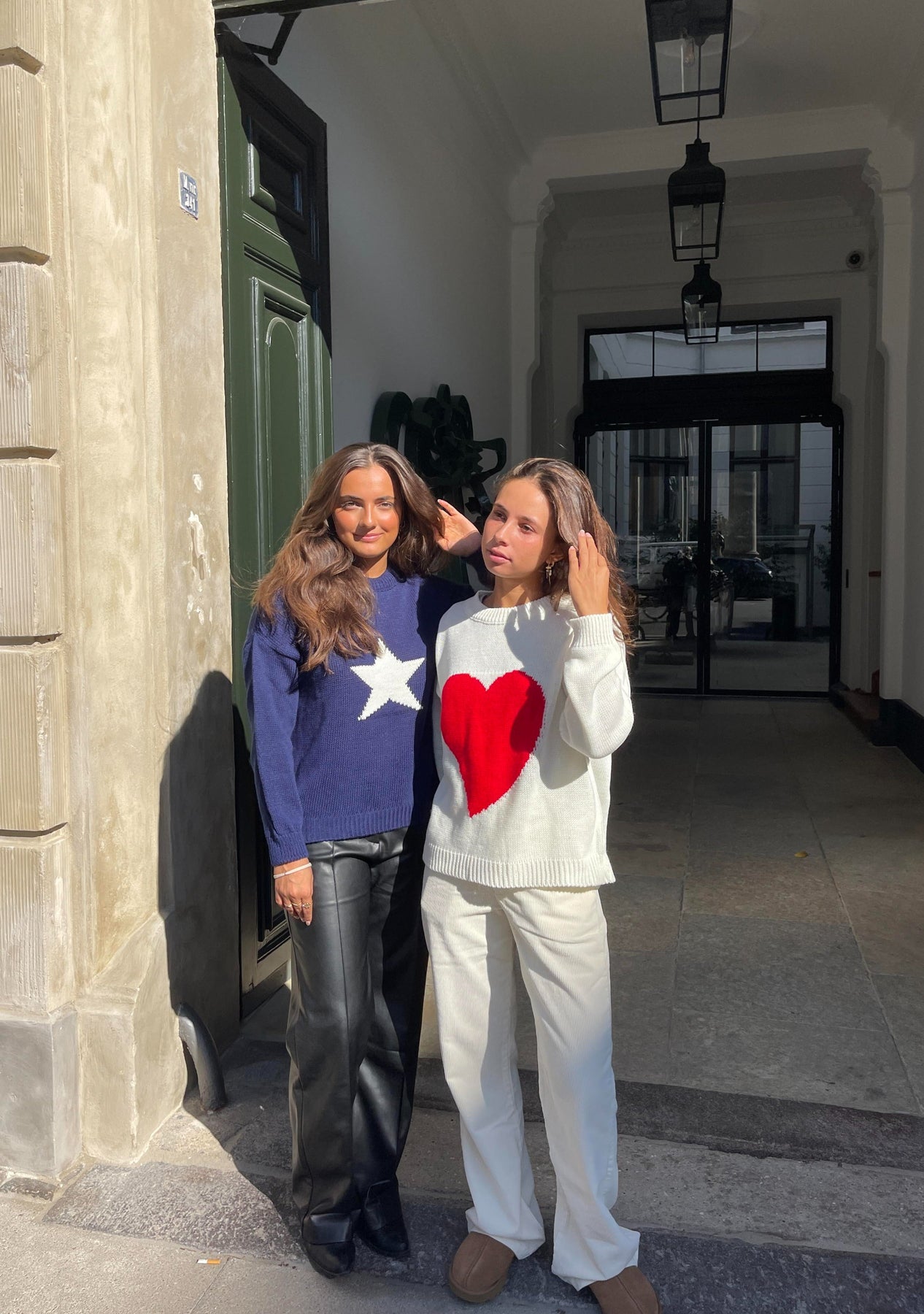 Dieser marineblaue Strickpullover überzeugt durch seinen lässigen und großzügigen Schnitt, der sowohl Eleganz als auch Gemütlichkeit in sich vereint. Ein markanter weißer Stern auf der Frontseite macht ihn zum Blickfang jedes Looks. Der Pullover hat einen Rundhalsausschnitt mit einem gerippten Abschluss sowie gerippte Bündchen und Ärmelenden, die eine ansprechende Passform und hohen Tragekomfort gewährleisten.