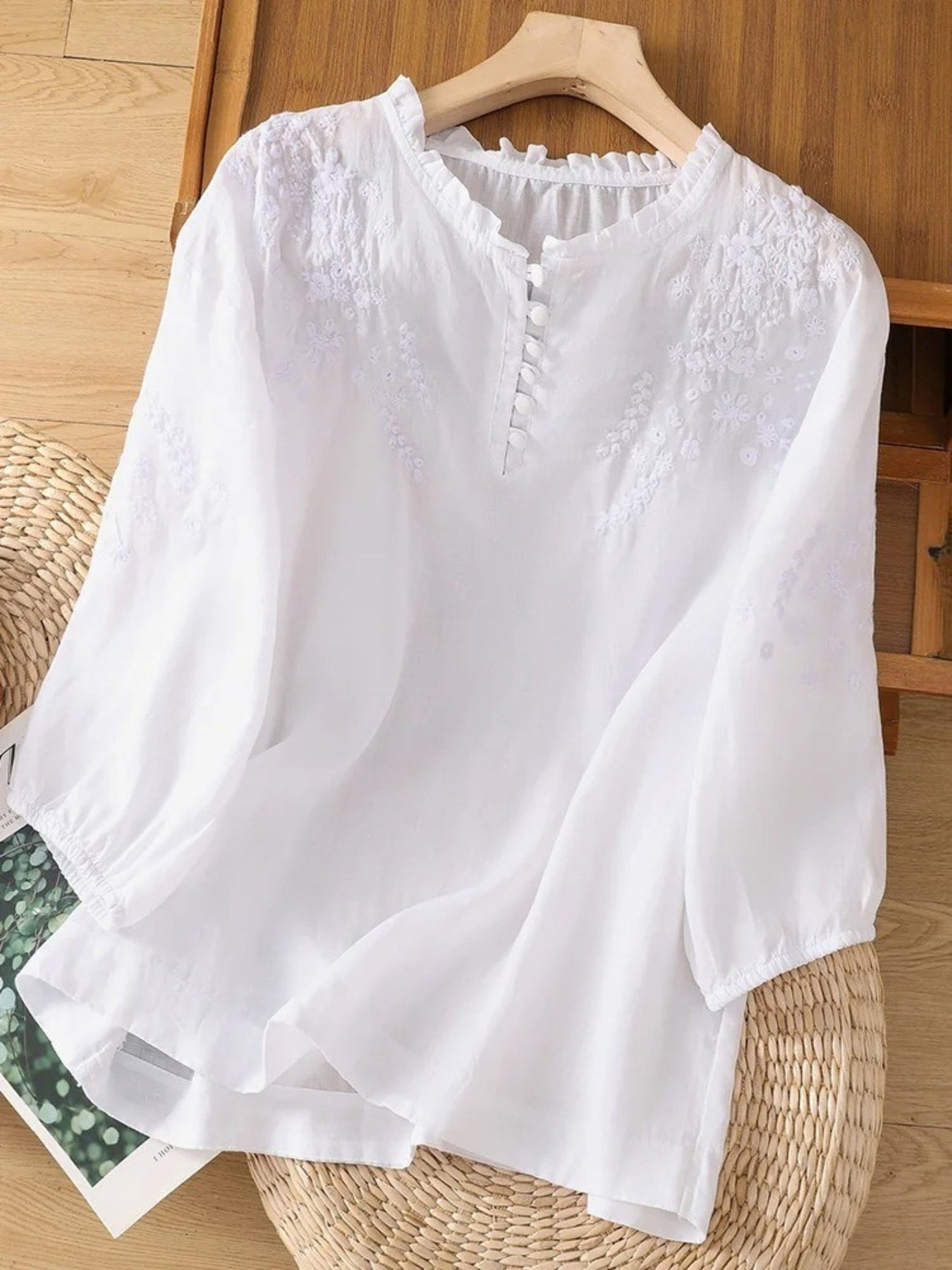Kissina – Bestickte Bluse Aus Baumwollleinen
