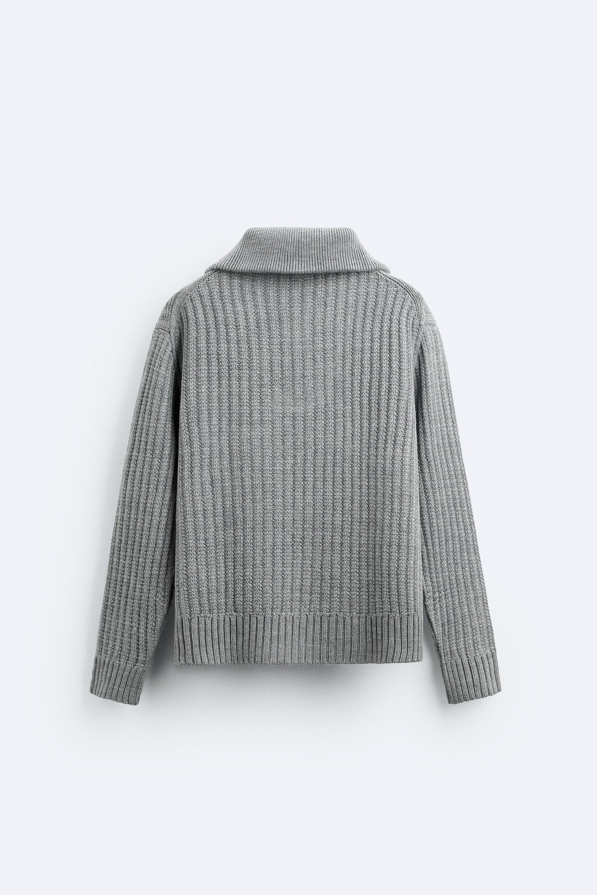 Klassischer Rippstrick-Pullover mit Reißverschluss