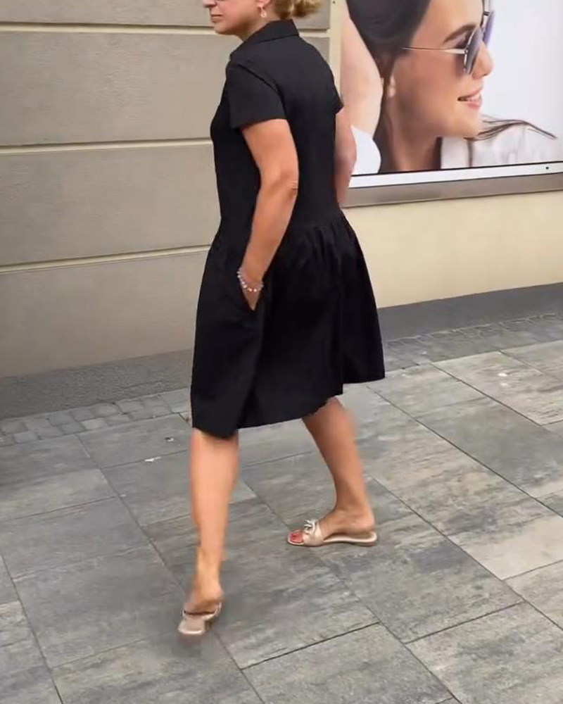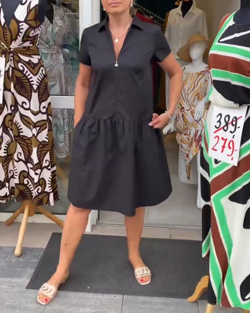 Kleid Revers Halbreißverschluss Uni A-Linie