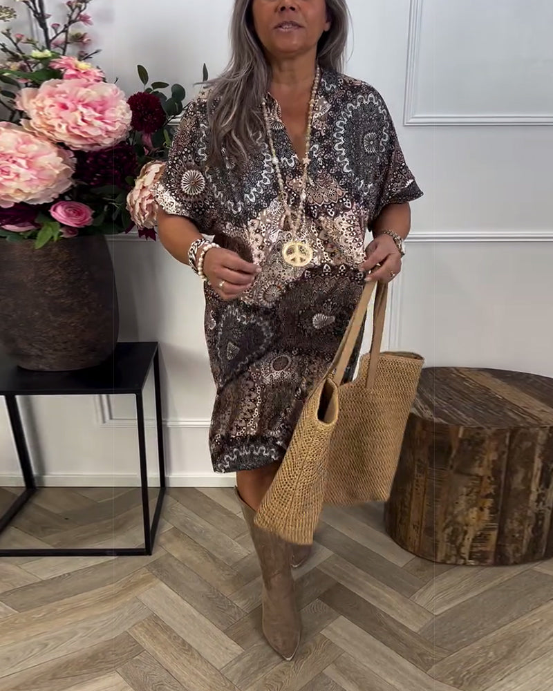 Kleid V-Ausschnitt Druck Kurzärmlig