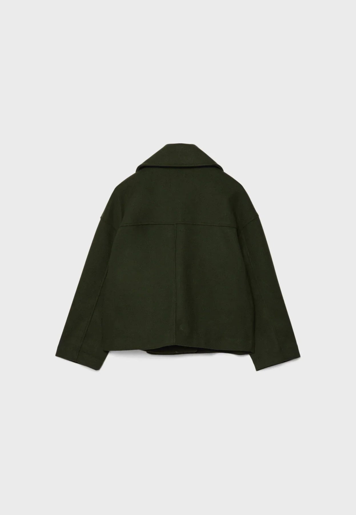 Kurzer Damenmantel mit doppelter Knopfreihe aus veganem Leder