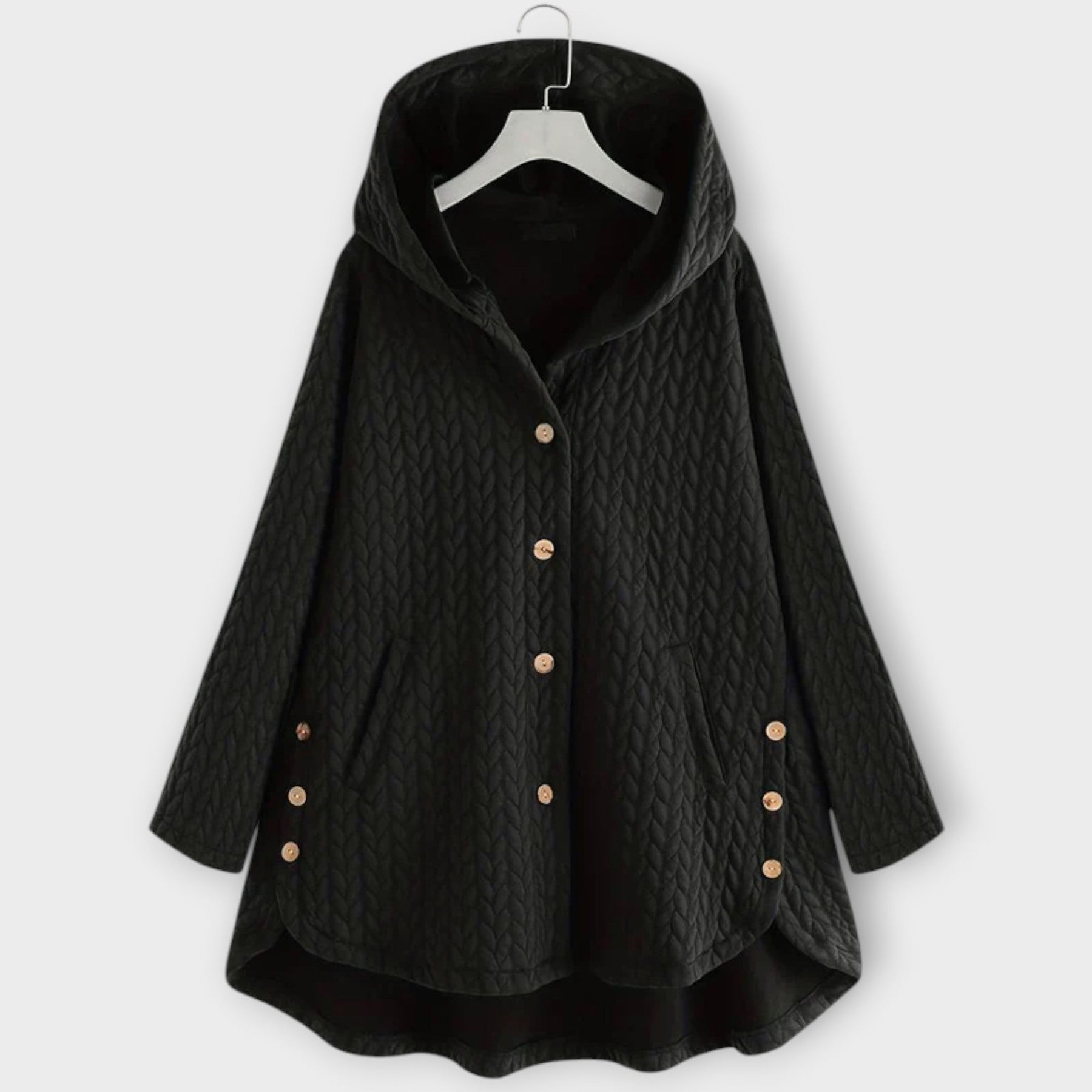 Lerina vereint kuschelige Wärme mit klassischer Schlichtheit. Der weite Schnitt sorgt für Bewegungsfreiheit, während die markante Knopfleiste einen eleganten Akzent setzt. Eine Jacke, die Komfort und Stil mühelos verbindet und dich zuverlässig durch kühle Tage begleitet.