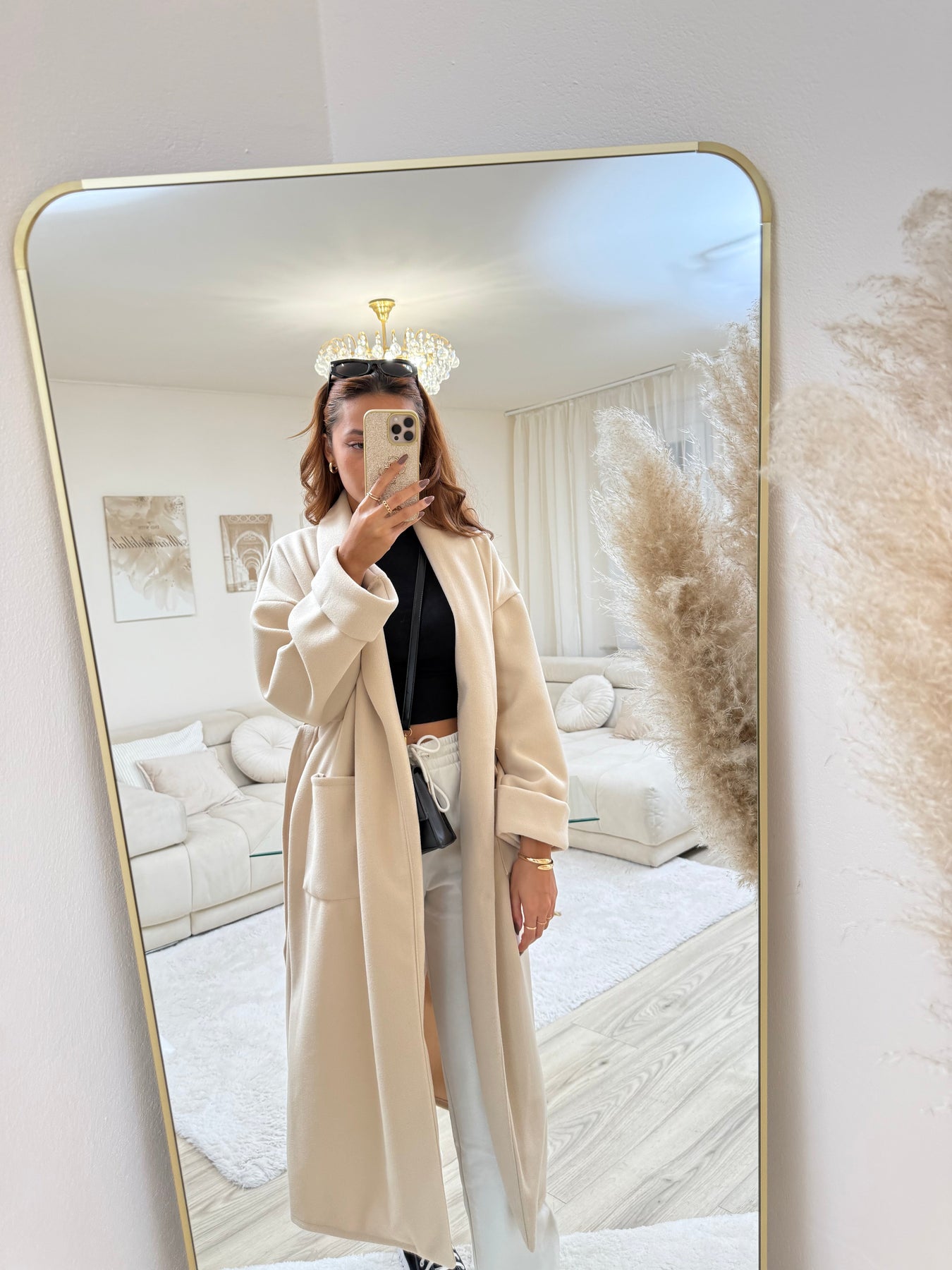 Wenn du diesen Mantel trägst, spürst du sofort den Unterschied: Das moderne Design, kombiniert mit den praktischen Taschen und dem eleganten Bindegürtel, macht ihn zu einem echten Highlight. Er ist ideal für den Alltag – ob auf dem Weg ins Büro, beim Stadtbummel oder beim Treffen mit Freunden. Der Mantel verleiht jedem Outfit eine Portion Luxus und sorgt dafür, dass du dich selbstbewusst und warm fühlst.