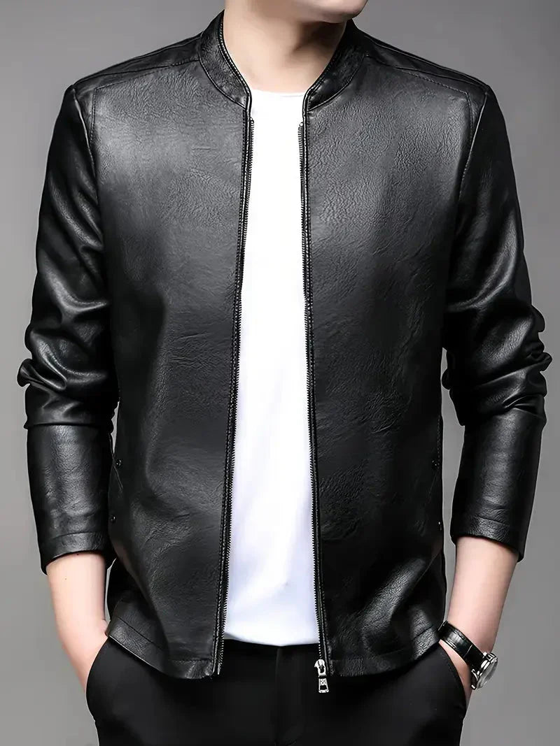 Moderne Einfarbige PU Lederjacke mit Stehkragen für Herren – Stilvoller Schutz bei Wind und Kälte