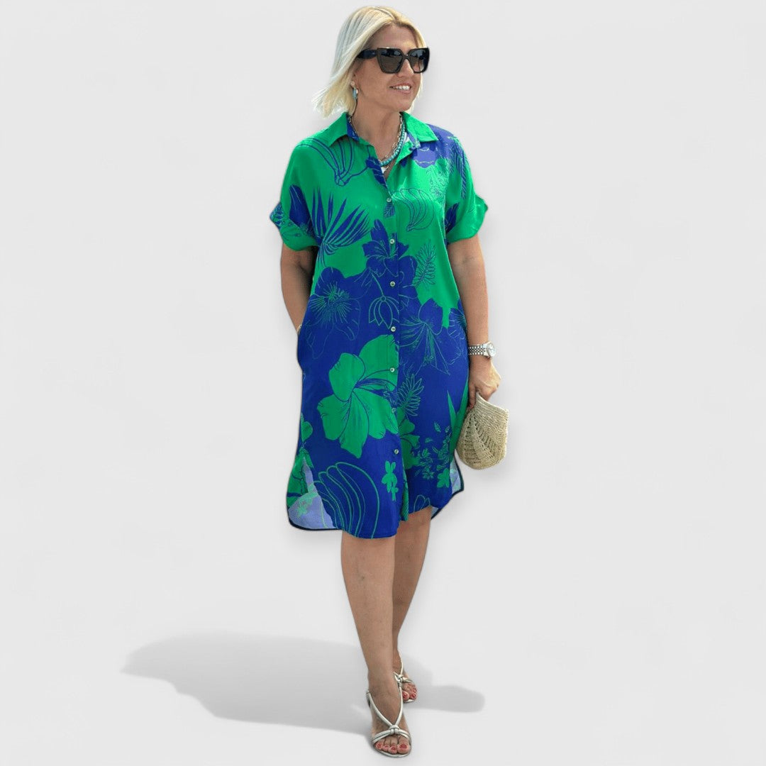 Bringen Sie frischen Wind in Ihren Alltag mit unserem beliebten Naomi Kleid, das dafür entworfen wurde, Sie an sonnigen Tagen mühelos zu begleiten. Dieses Bestseller-Stück kombiniert einen lässigen Schnitt mit einem lebhaften Blumenmuster und sorgt dafür, dass Sie sich zu jedem Anlass wohl und schick fühlen.