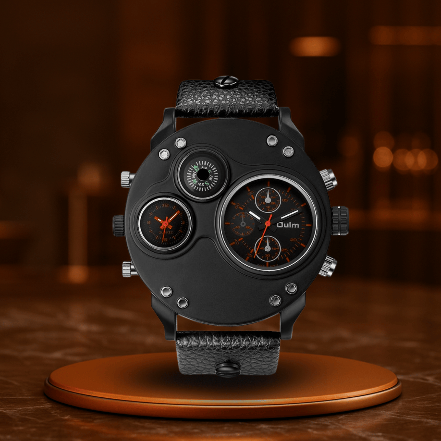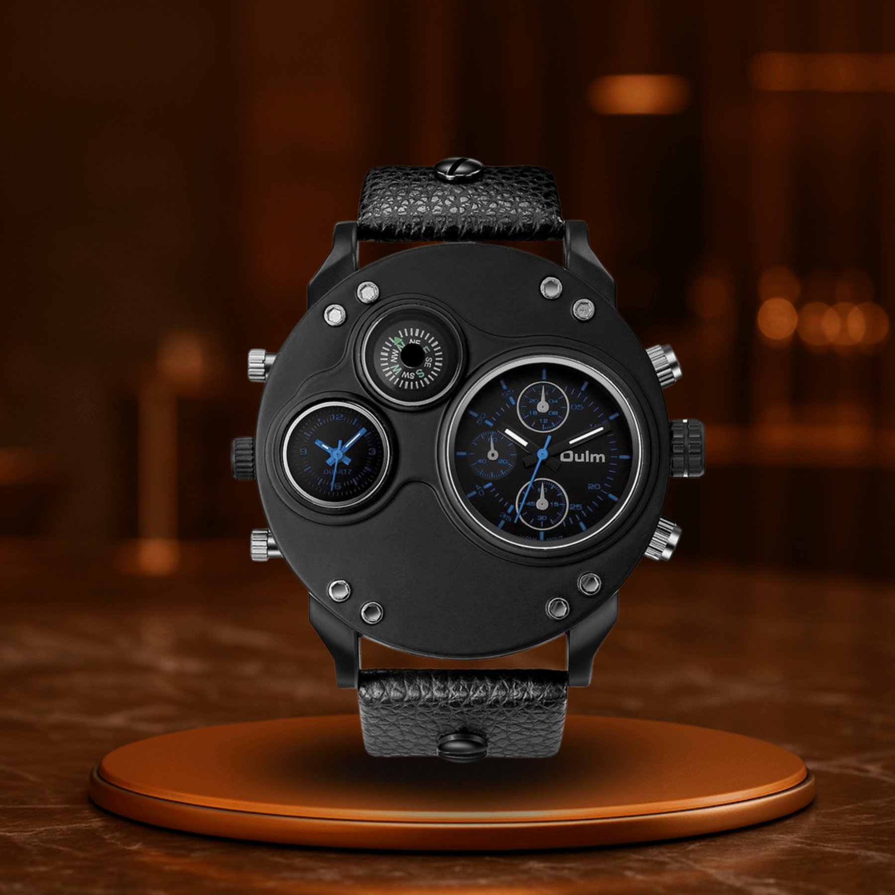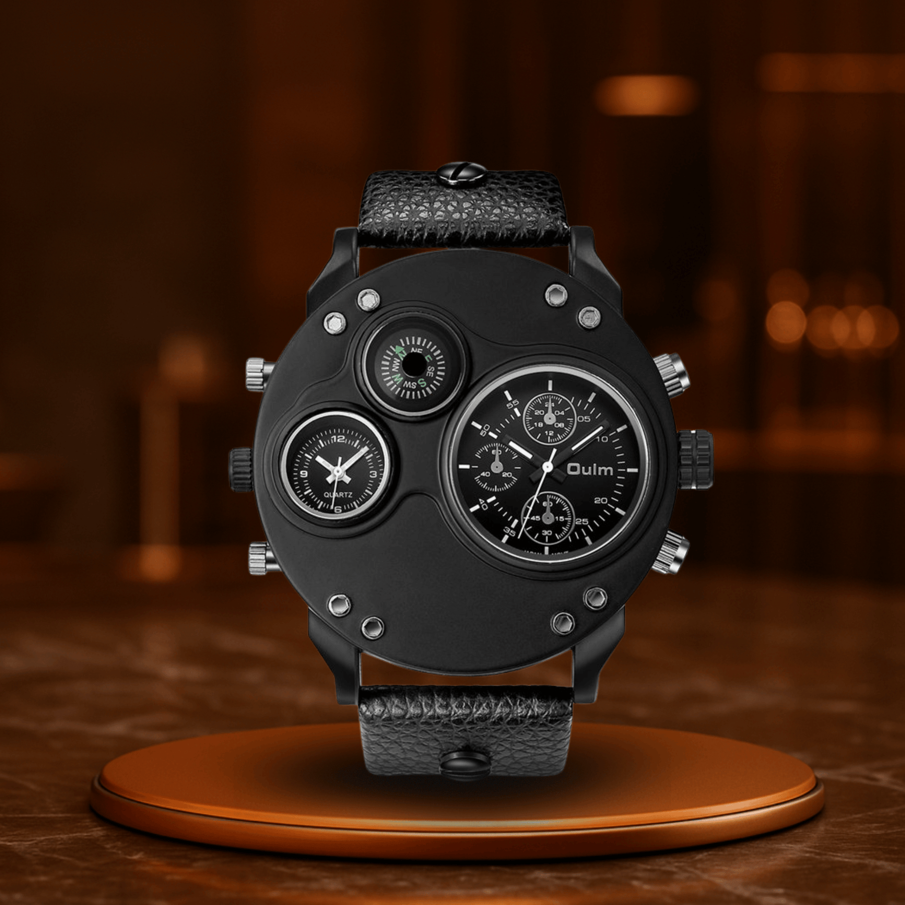 Noir Meridian ist nicht nur eine Uhr – es ist dein taktisches Werkzeug in einer vernetzten Welt. Mit seiner doppelten Zeitzonen-Optik, dem kraftvollen Gehäusedurchmesser von 53 mm und dem tiefschwarzen Lederarmband sendet es ein klares Signal: Du bist überall zu Hause – und immer stilvoll unterwegs.