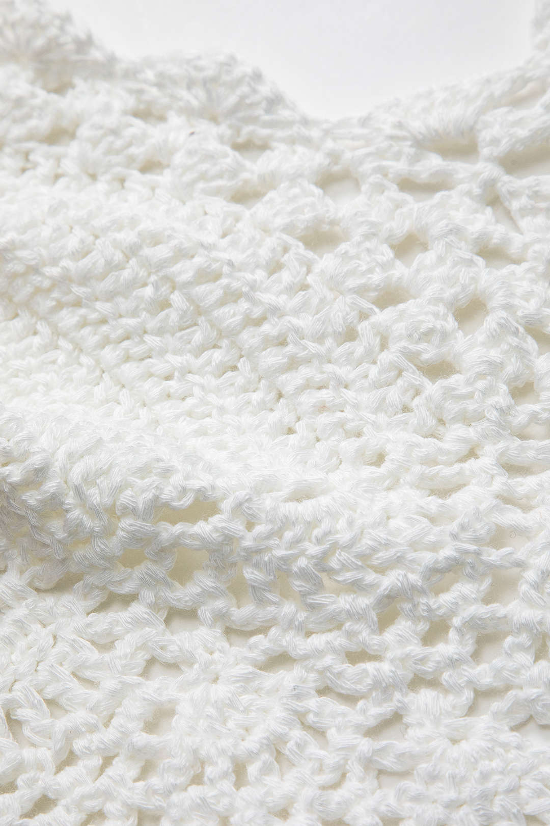 Nora | Weiß Handgehäkeltes Boho-Crop-Top mit Neckholder & verstellbaren Bindebändern
