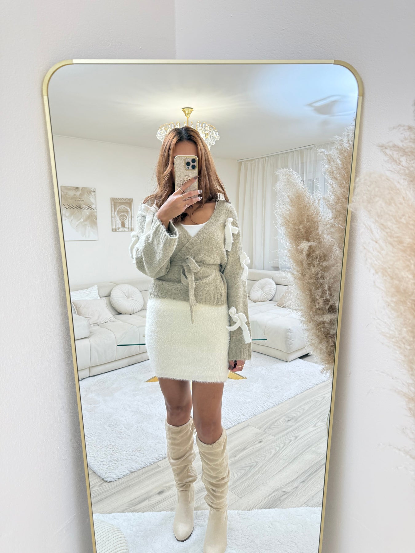 Der Plüsch Rock ist mehr als nur ein Kleidungsstück – er ist ein echtes Wohlfühl-Erlebnis. Sobald du ihn anziehst, spürst du, wie der ultraweiche, flauschige Stoff dich umgibt und dir das Gefühl gibt, in eine warme, gemütliche Umarmung eingehüllt zu sein. Das integrierte Unterkleid sorgt dafür, dass der Rock einen perfekten Fall hat und deine Figur auf elegante Weise umspielt. Der Bindegürtel ermöglicht es dir, deine Taille individuell zu betonen und so eine feminine Silhouette zu kreieren. Dieses Kleid ist ideal für alle, die sich in ihrer Kleidung nicht nur modisch, sondern auch rundum wohl fühlen möchten.