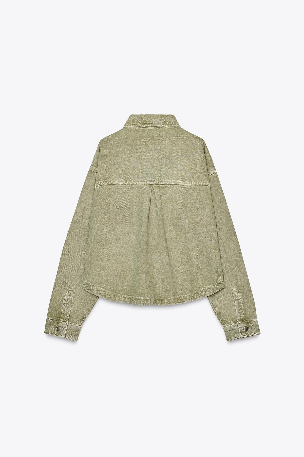 Diese oversized jeansjacke in verwaschenem khaki ist ein lässiger allrounder für jeden tag. der strukturierte baumwollstoff sorgt für form und tragekomfort, während die lockere silhouette, die überschnittenen schultern und die aufgesetzten taschen einen modernen, minimalistischen look schaffen. kombiniere sie mit leichten kleidern, leinenhosen oder monochromen basics – für müheloses layering mit stil.