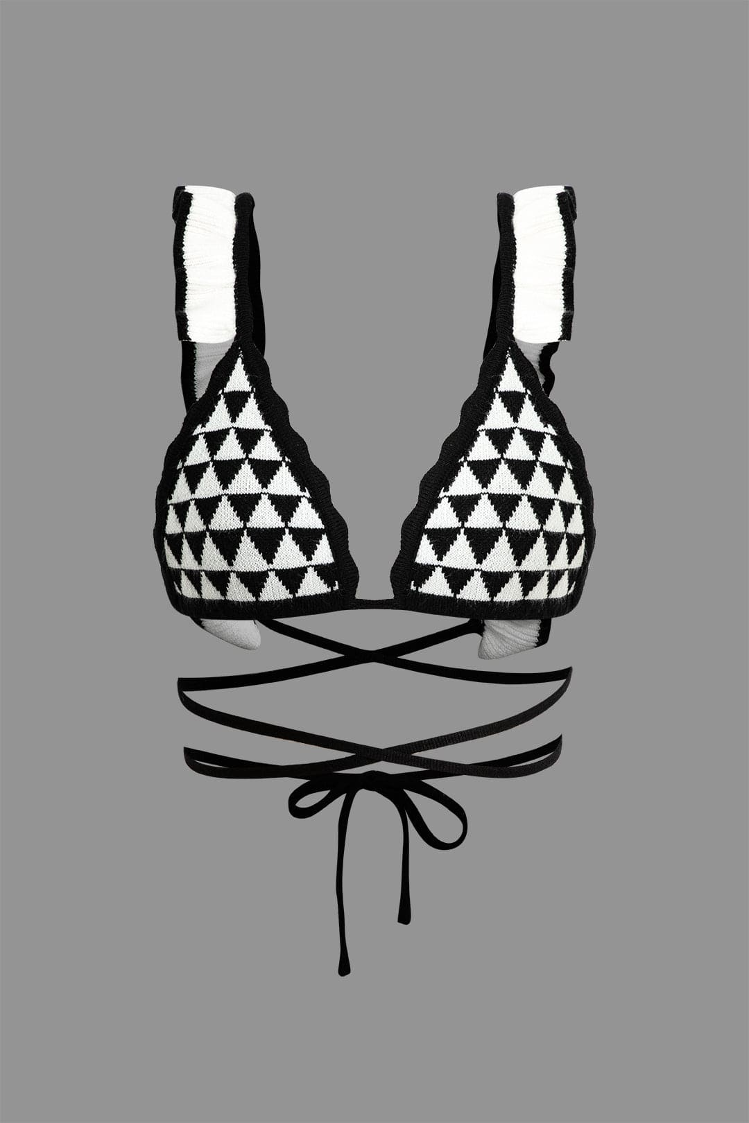 1. Handgehäkeltes Bikini-Top – Femininer, verspielter Look mit Wickelband für eine perfekte Passform.