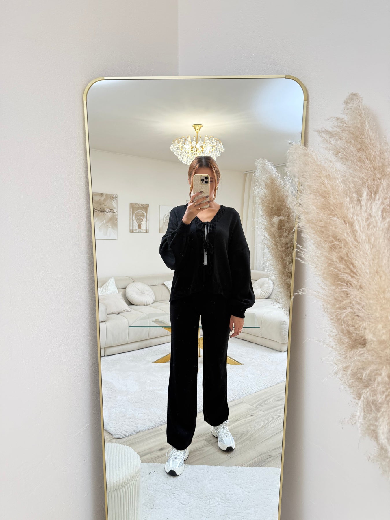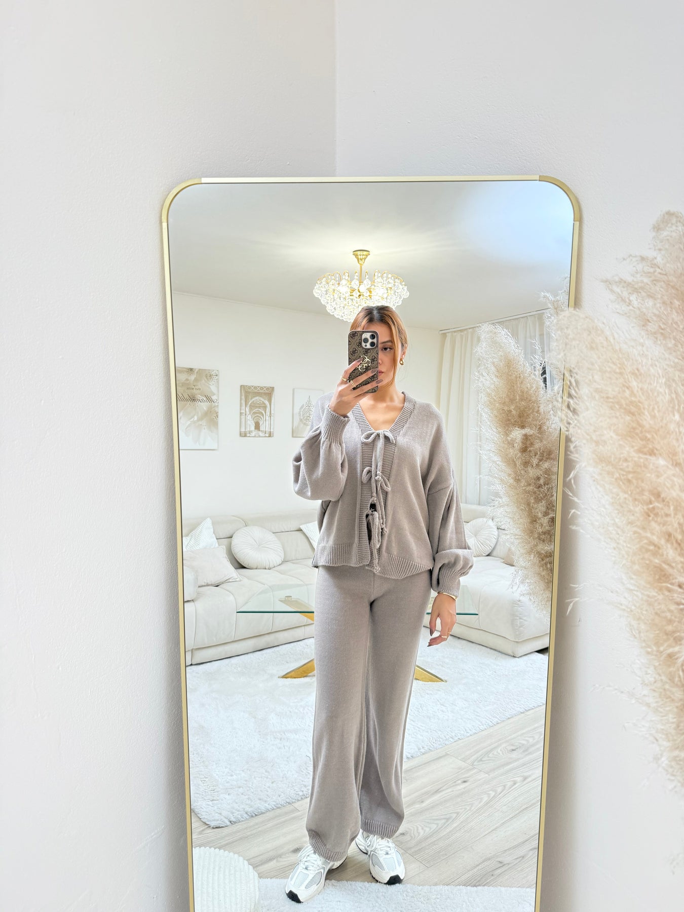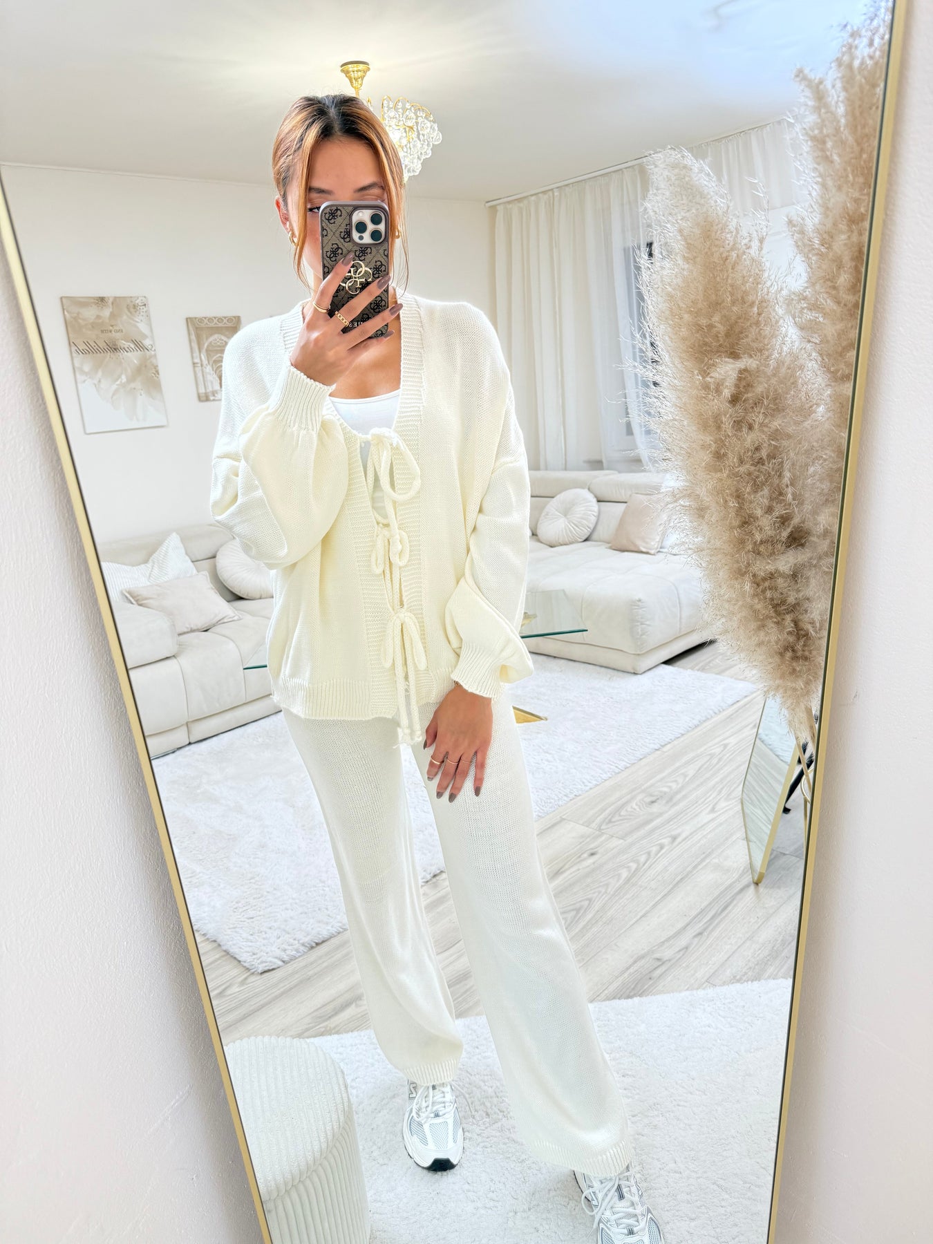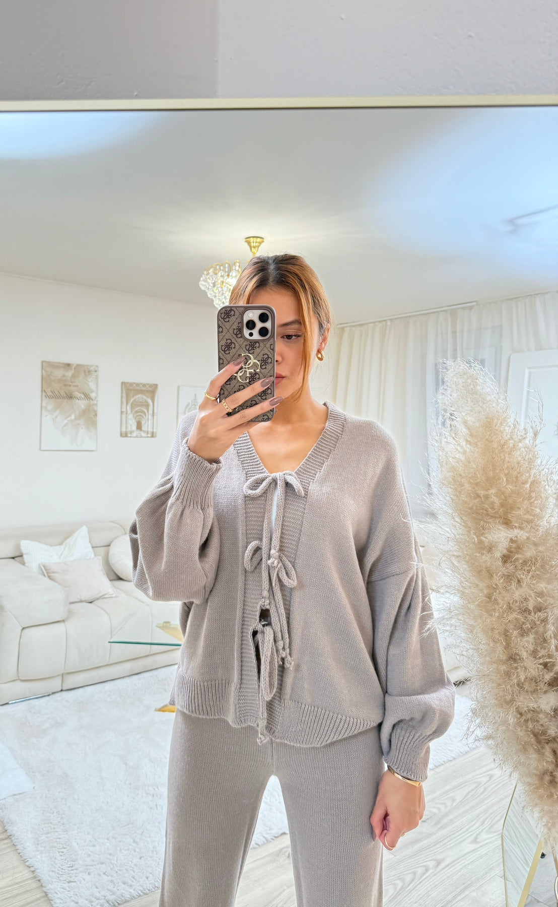Schleifen Set und Gemütliches Wohlfühl-Set – Dein Kuscheliger 2 teiliger Cardigan und Hose im Cosy-Look