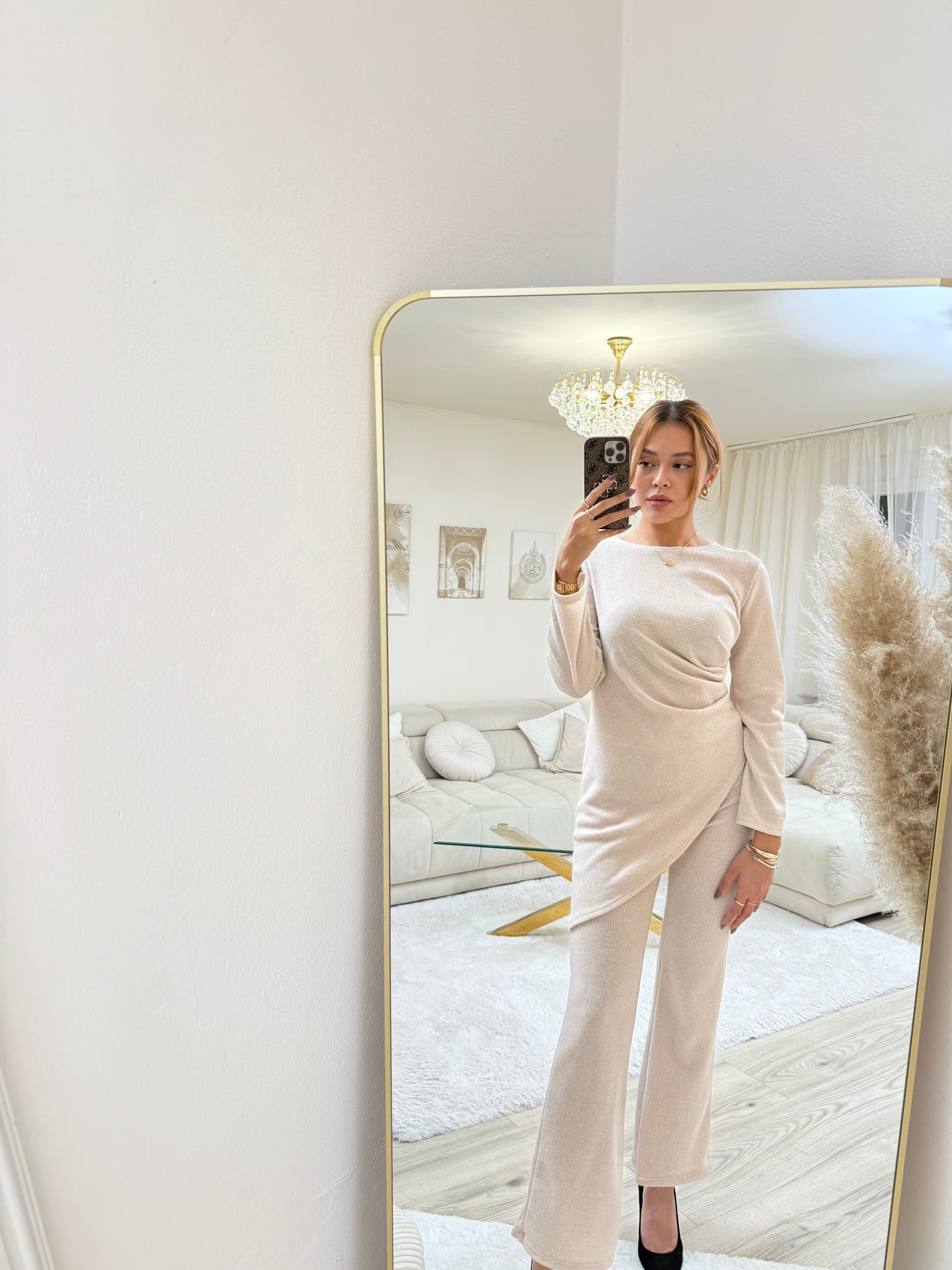 „Dieses Set kombiniert einen modernen, asymmetrischen Schnitt mit einer figurschmeichelnden Silhouette. Es ist unglaublich bequem und lässt sich vielseitig stylen – ein echter Hingucker! – Laura M.“