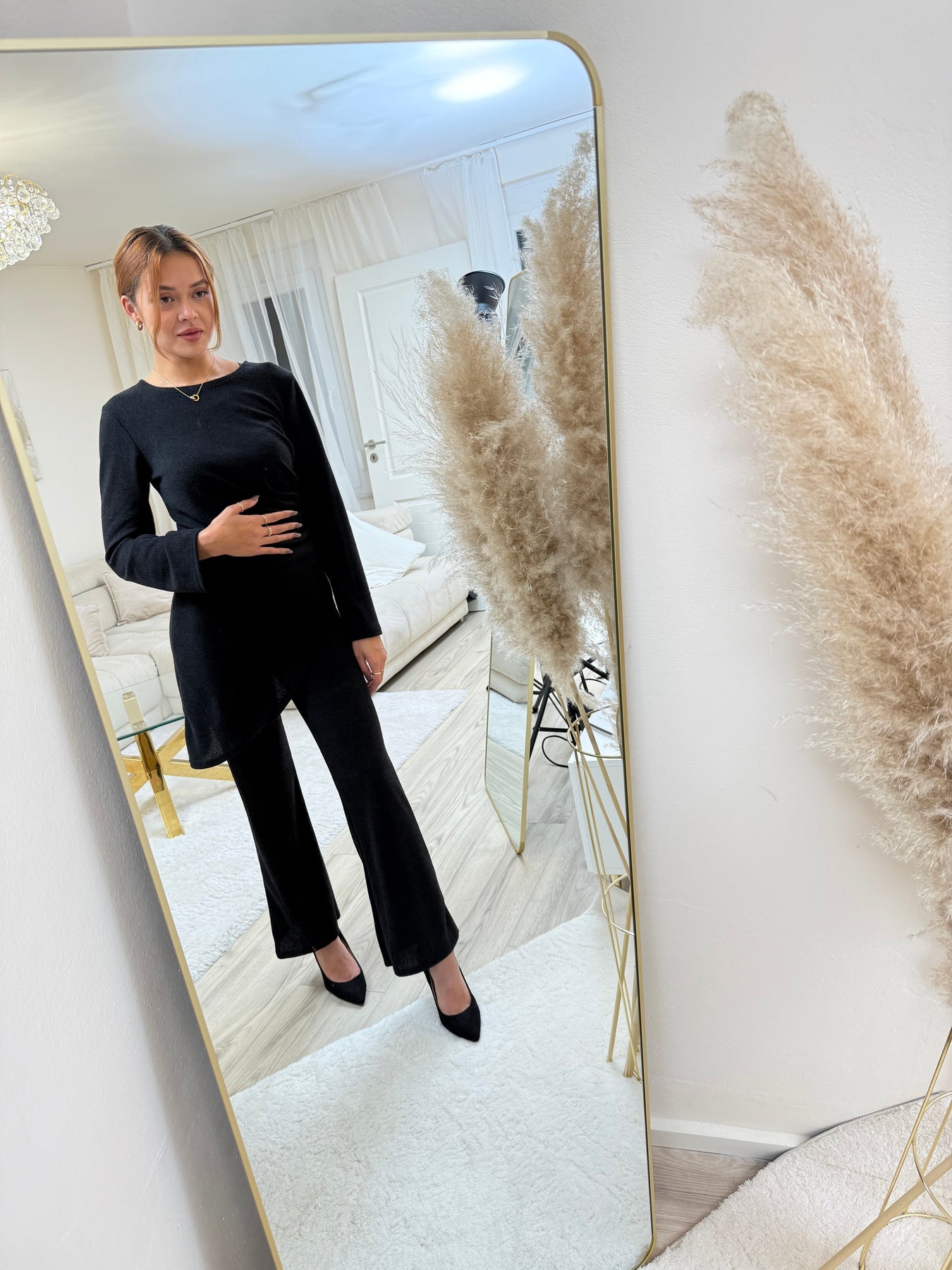 „Das Set mit spitzem Schnitt und asymmetrischer Note ist ein absolutes Highlight. Es vereint Komfort, Stil und Vielseitigkeit auf perfekte Weise. Ich kann es nur jedem empfehlen, der modisch und bequem gekleidet sein möchte. – Martina S.“