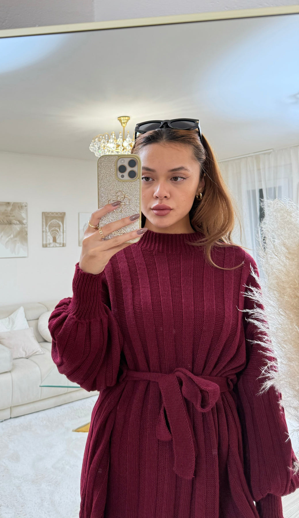 Tauche ein in die Welt unseres Strick-Sets mit Stoffgürtel und erlebe, wie du mit diesem Wohlfühl-Outfit deine Wintergarderobe revolutionierst!
