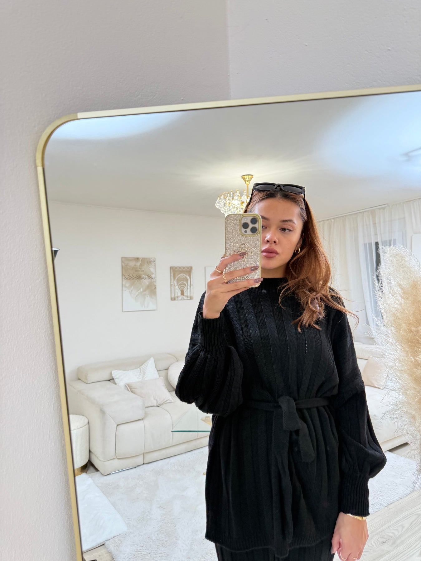 „Ich liebe dieses Set! Es ist weich, warm und der Stoffgürtel setzt stilvolle Akzente. Es passt perfekt zu meinem Casual-Look und verleiht mir das Gefühl, etwas Besonderes zu tragen. – Laura M.“