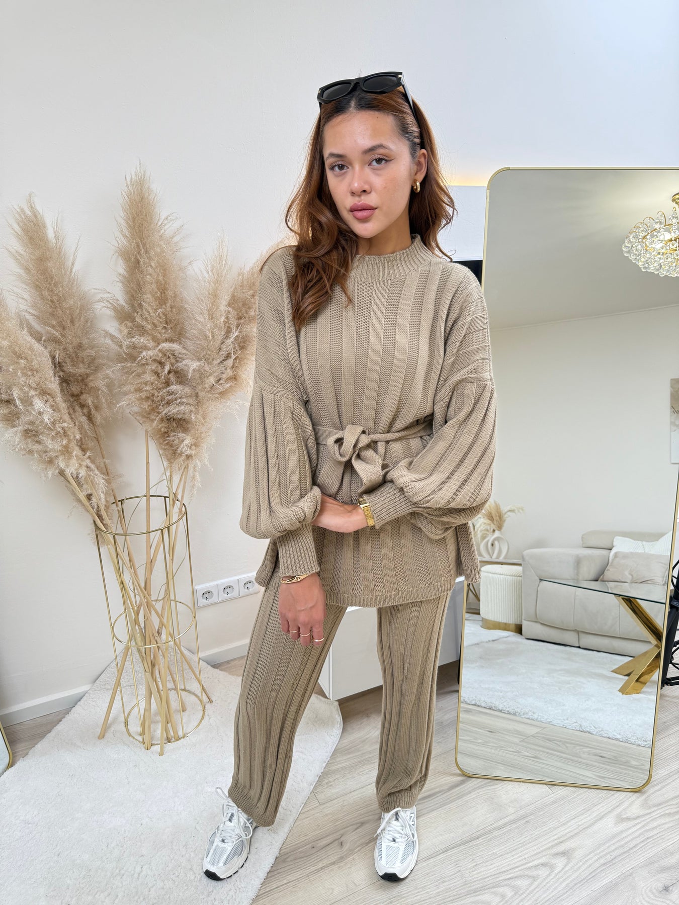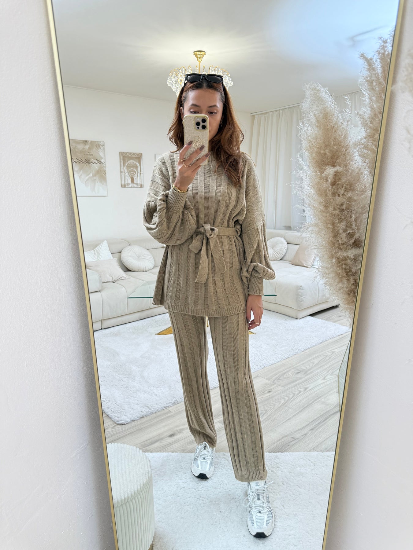 Strick Set mit Stoffgürtel – Dein Wohlfühl Winter Outfit im Casual Look