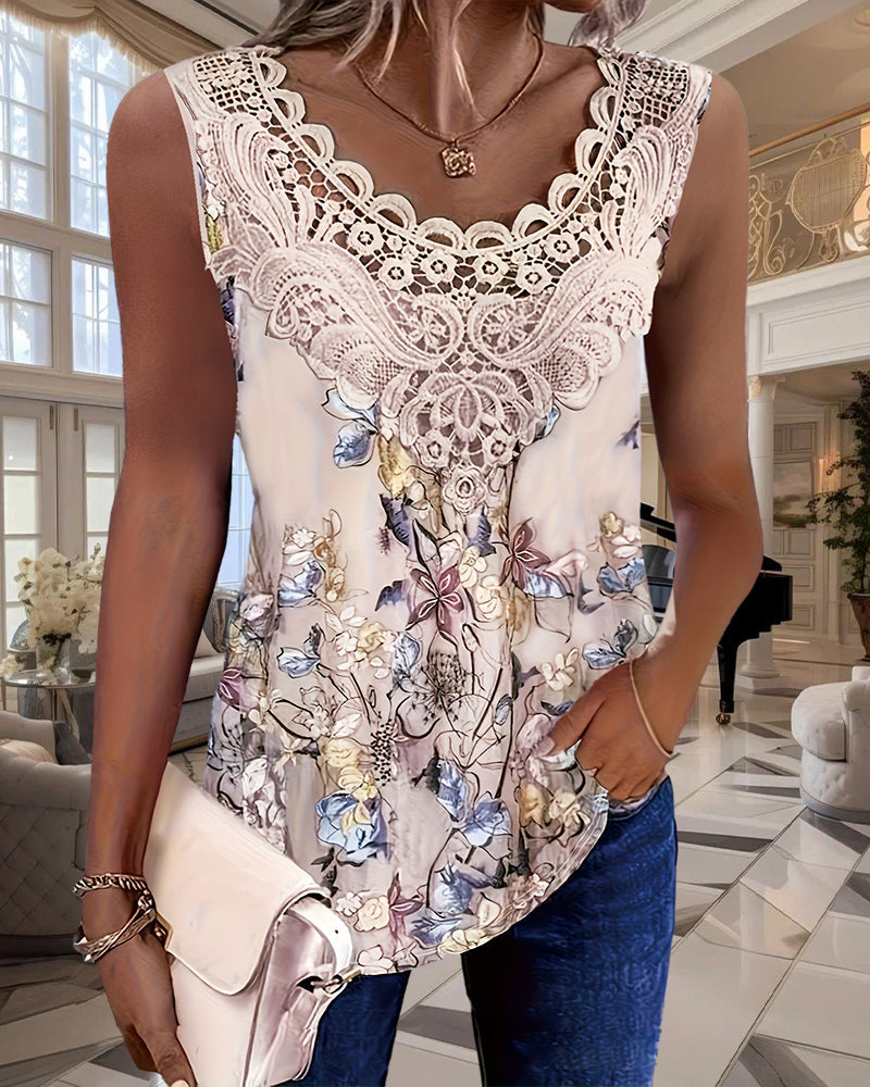Tanktop Ärmellos Bedruckt Hohles Design Modisch