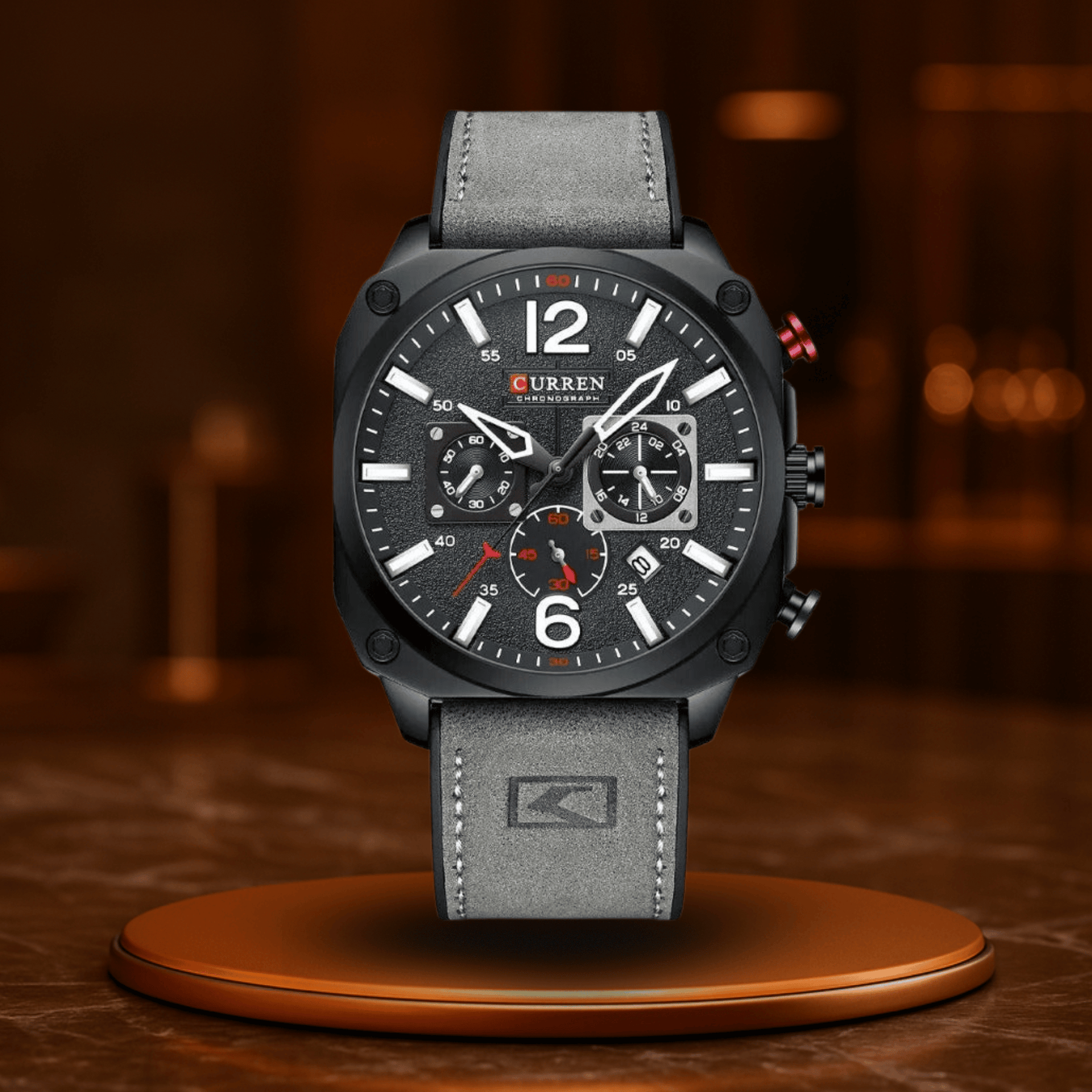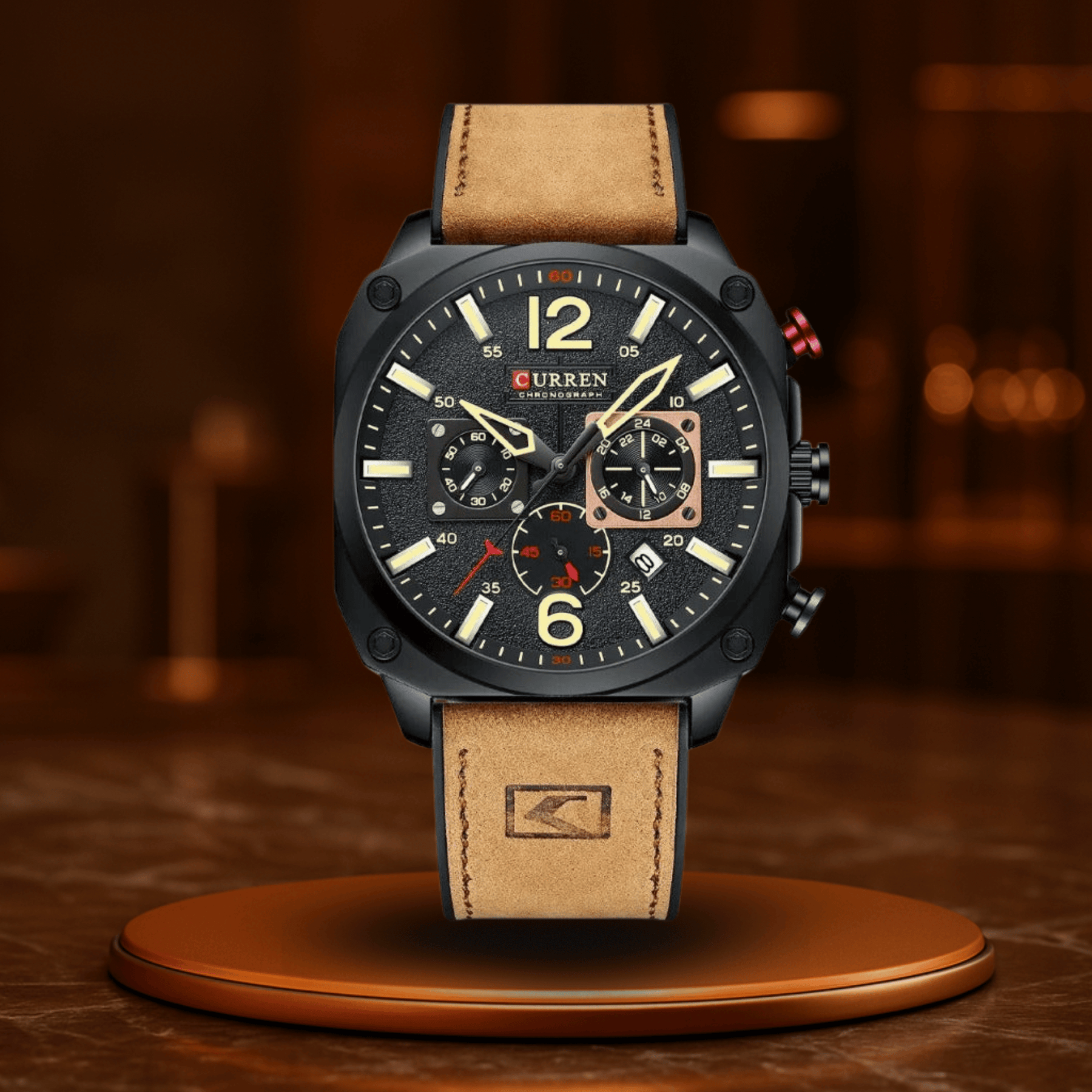Der Vanguard 44 ist mehr als nur eine Uhr – es ist ein Werkzeug für Exzellenz. Mit einem präzisen Quarzwerk und einem schlanken, aber auffälligen Design setzt es den Standard. Das elegante Lederarmband sorgt für maximalen Komfort, während die wasserdichte Konstruktion und Schockbeständigkeit Robustheit im Alltag garantieren.