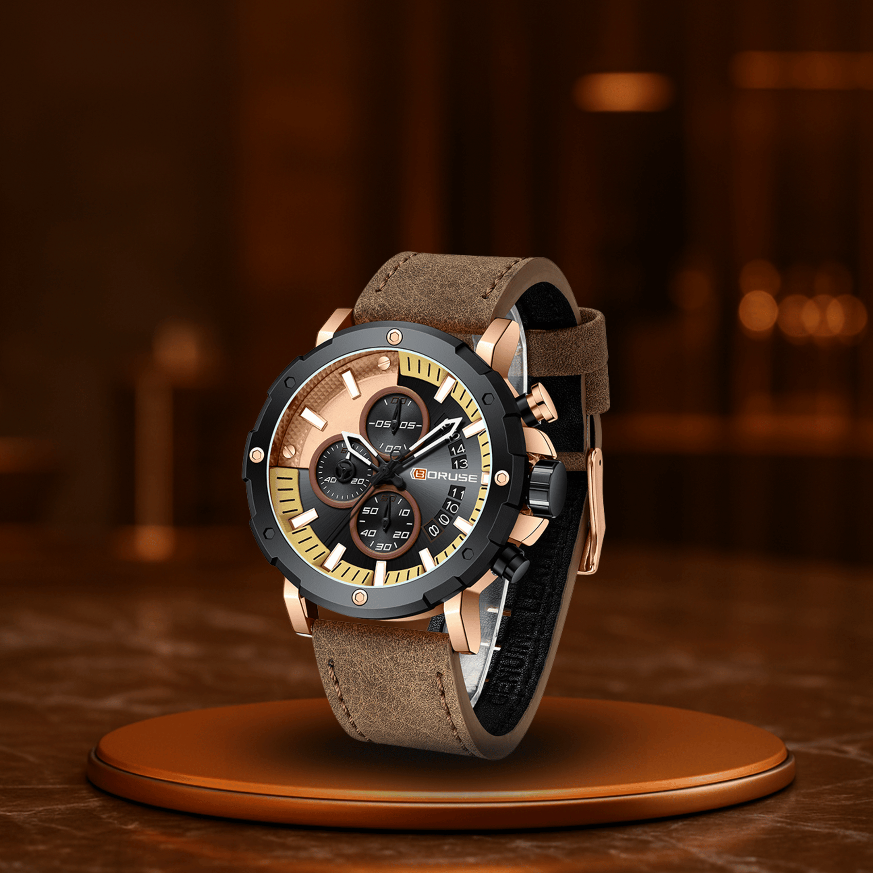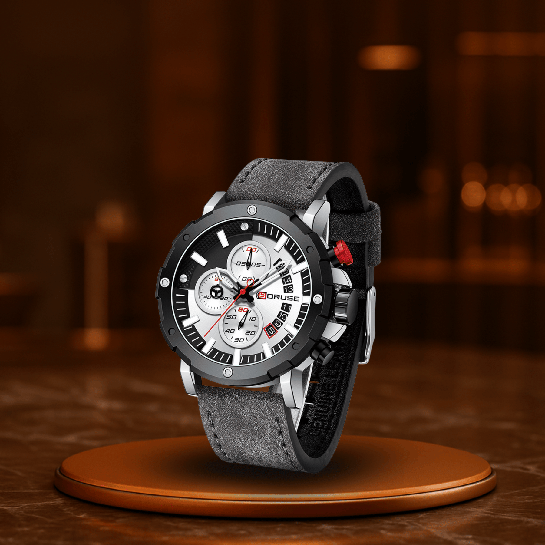 Vanguard 47 ist mehr als nur eine Uhr – es ist der perfekte Begleiter für den Mann, der sowohl Eleganz als auch Funktionalität verlangt. Mit seinem leuchtenden Zifferblatt hast du die Zeit immer im Blick, selbst bei schwachem Licht – und das elegante schwarze Lederarmband sorgt für Komfort, egal ob du im Büro bist oder bei einem zwanglosen Abendessen.