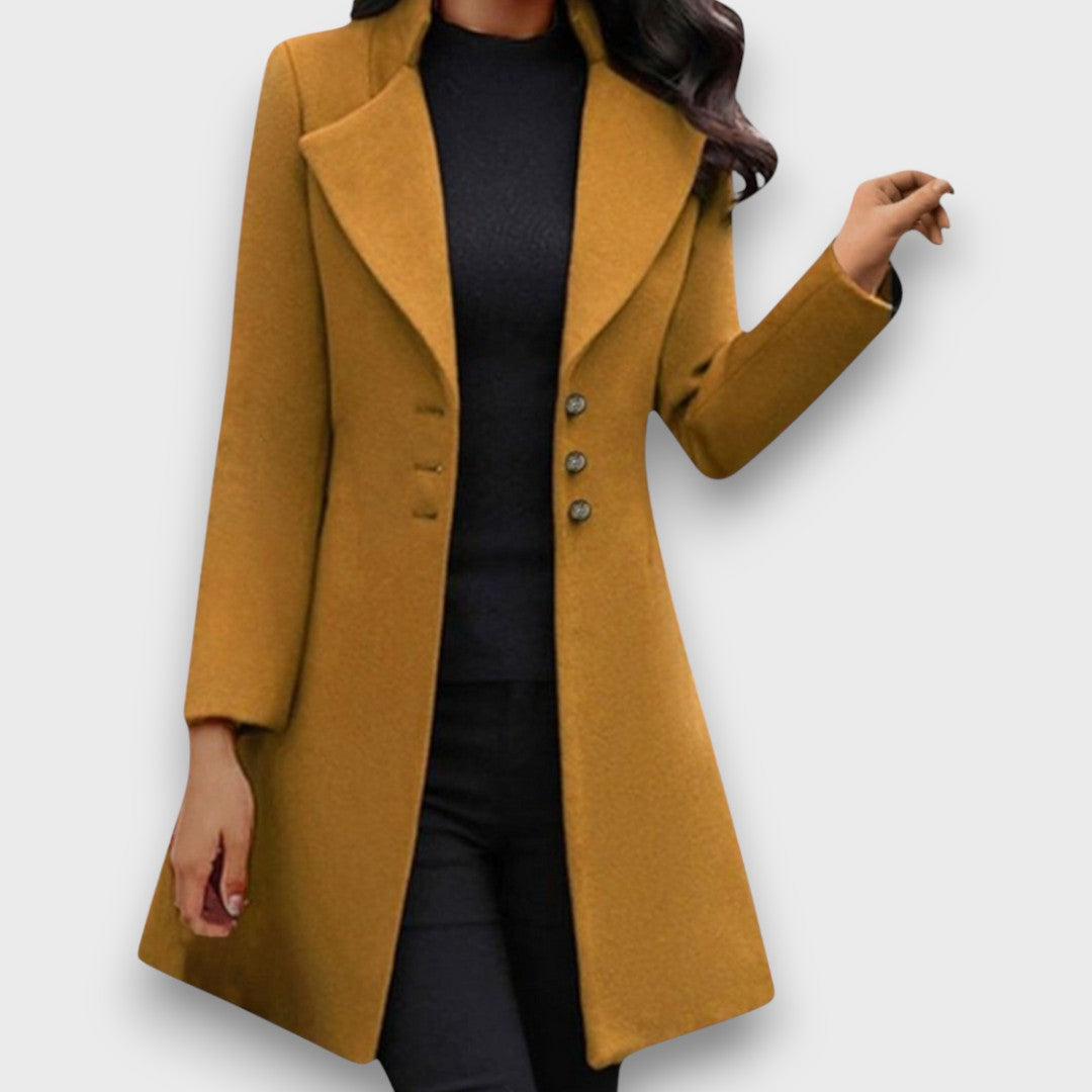 Venzi verkörpert pure Eleganz in minimalistischer Form. Der schmale Schnitt, die klaren Linien und die dezenten Knopfdetails machen ihn zu einem unverzichtbaren Stück für stilbewusste Frauen. Ein Mantel, der klassische Raffinesse mit moderner Schlichtheit verbindet.