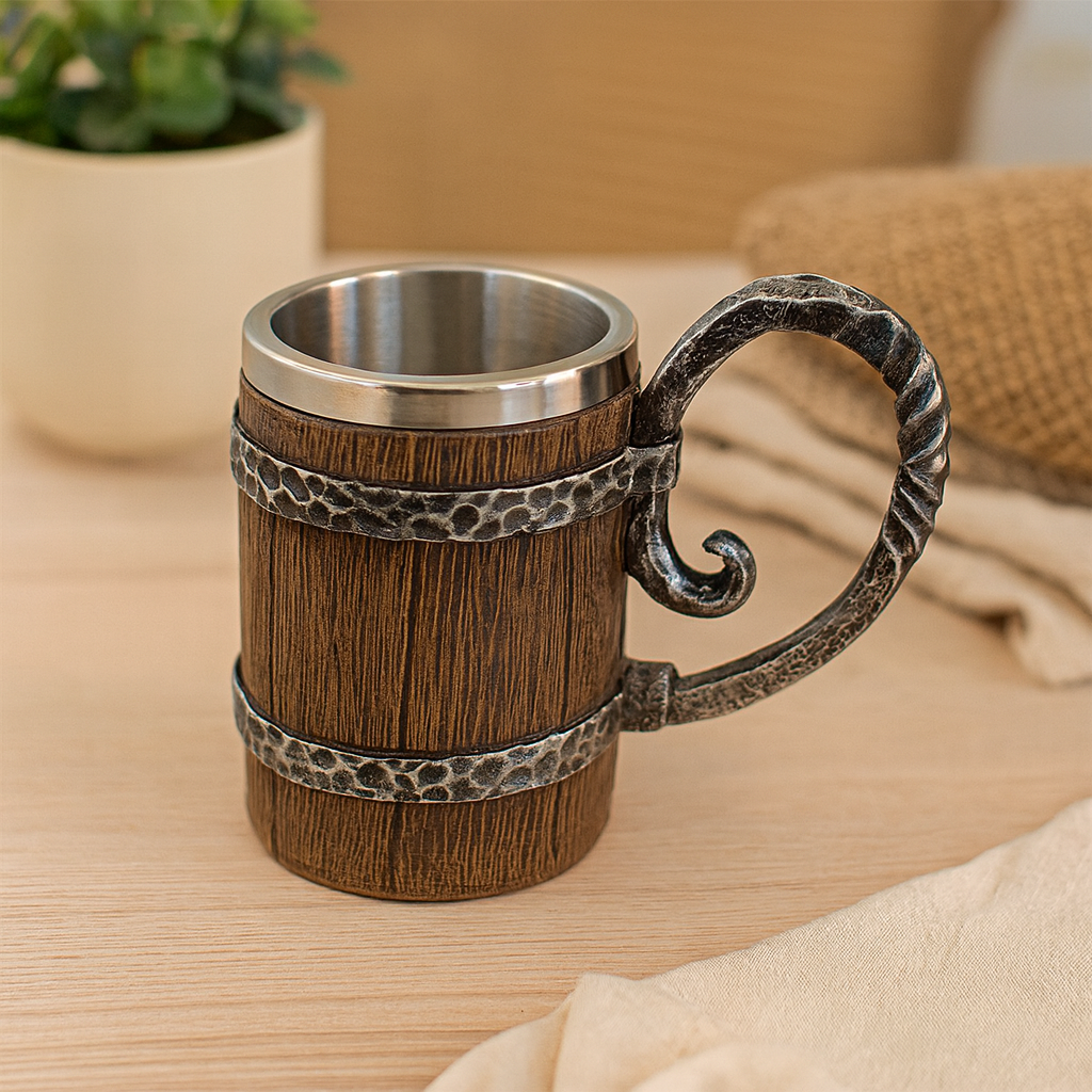Genieße ein klassisches Biererlebnis mit diesem Bierkrug im Vintage-Stil, inspiriert von Wikingerfässern. Ideal für das Oktoberfest oder als Dekoration – er verleiht jedem Anlass Charakter.