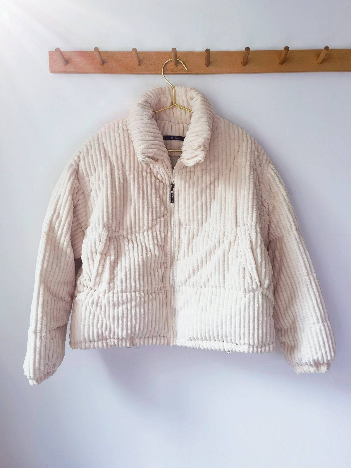 Wärmende Cremefarbene Steppjacke mit Stehkragen für Damen