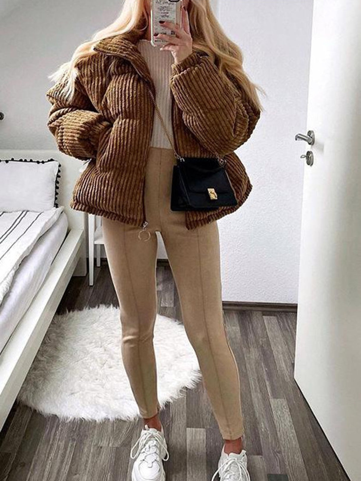 - Eleganter Stehkragen: Der Stehkragen bietet zusätzlichen Schutz vor Wind und Kälte und verleiht einen schicken Look.